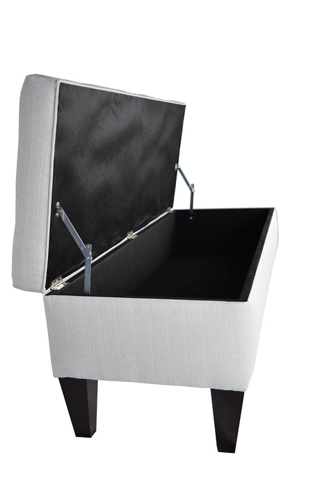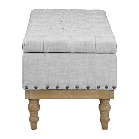 Landis Button Tufted Padded Top Storage Bench with Brushed Legs, Dove Grey Fabric