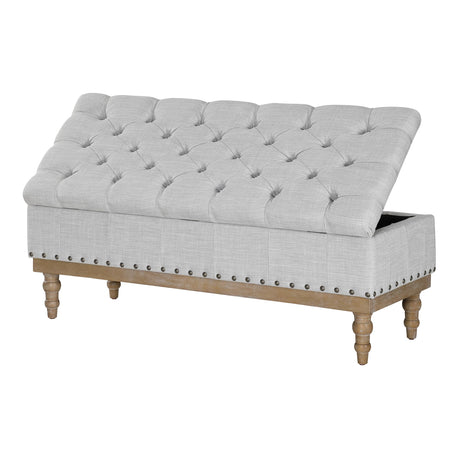 Fabric Upholstered Button Tufted Wooden Bench with Hinged Storage