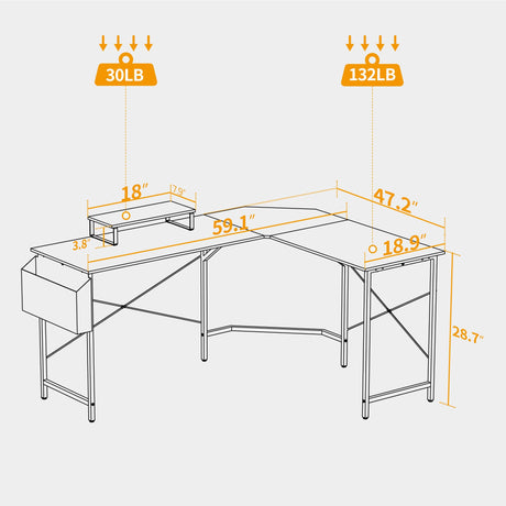 L Shaped Desk, 59.1 Inch Reversible Corner Desk with Storage Shelves, Home Office