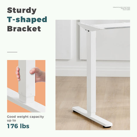 Height Adjustable Electric Standing Desk with Whole Board, Modern, White