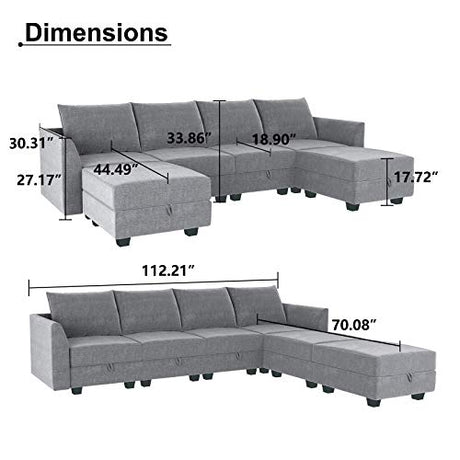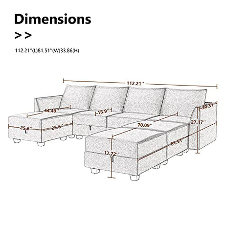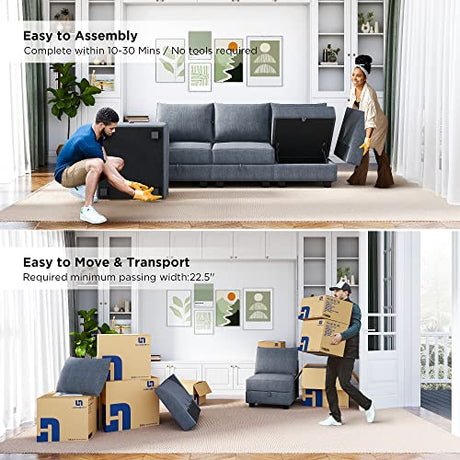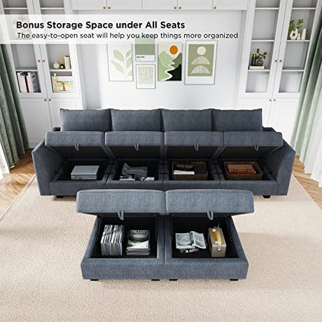 Modular Sectional Couch with Storage Ottoman, U Shape Sectional Sofa