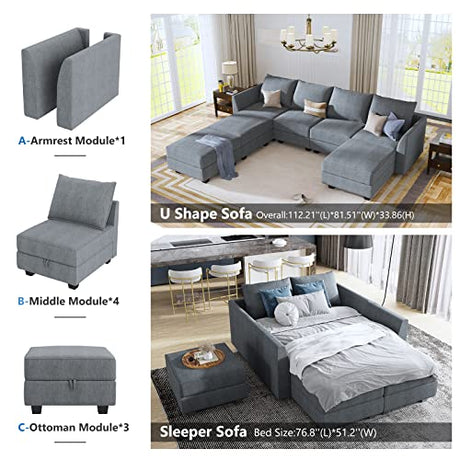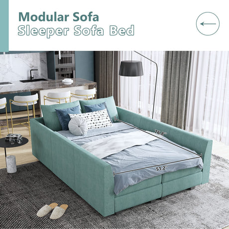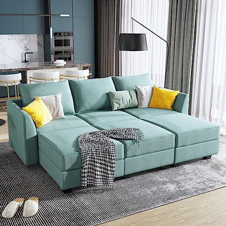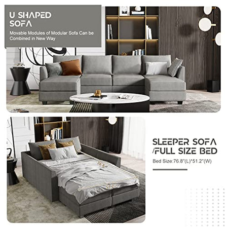 Convertible Modular Sectional Sofa with Ottomans Polyester Fabric Sleeper Sectional