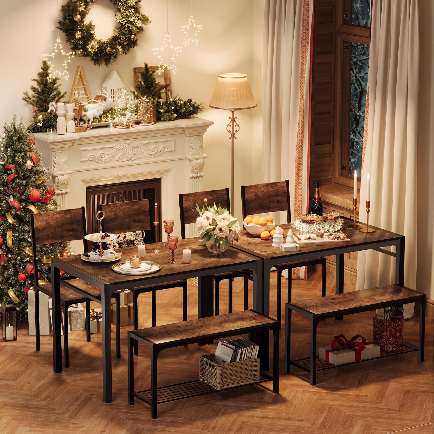 Transform your compact dining area with this space-efficient 4-piece dining set, expertly designed to maximize functionality without compromising style. This complete dining solution combines a sturdy table, two comfortable chairs, and a versatile bench to accommodate up to four people comfortably.