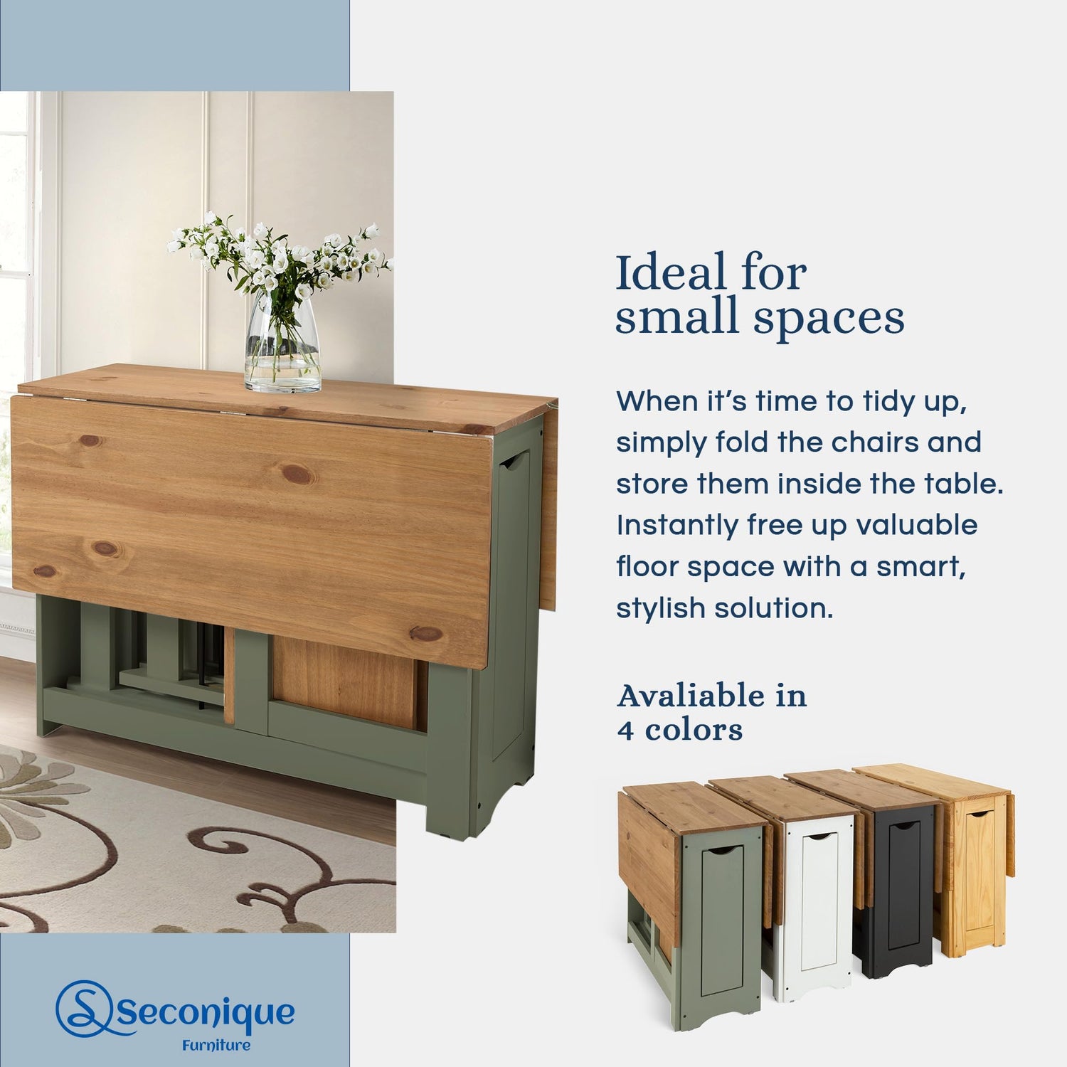 Transform your dining space with this innovative space-saving dining solution. This 5-piece butterfly dining set combines functionality with rustic charm, featuring a folding table and four foldable chairs that nest perfectly within the table frame when not in use.