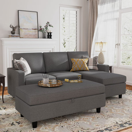 Reversible Sectional Couch with Ottoman L-Shaped Sofa for Small Spaces Sectional Sofa