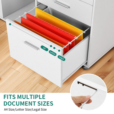 File Cabinet, Mobile Lateral Filing Cabinet with Lock for Home Office