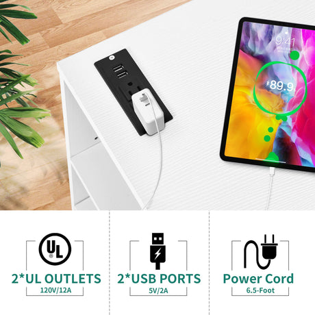 L Shaped Desk with Power Outlets & LED Lights