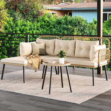 L-Shaped Patio Furniture Outdoor Loveseat Sectional Set for Backyard