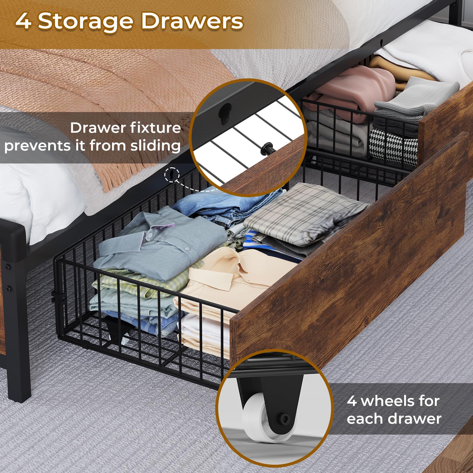Farmhouse Full Size Metal Bed Frame with Storage Shelf Headboard