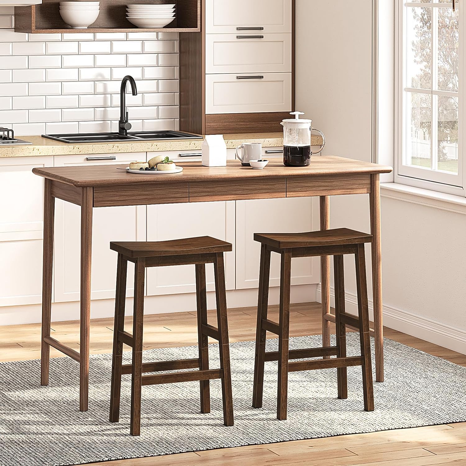 Bar Stool Set of 2, 26 Inches Kitchen Counter Stools With Footrest, Bamboo Bar Chairs