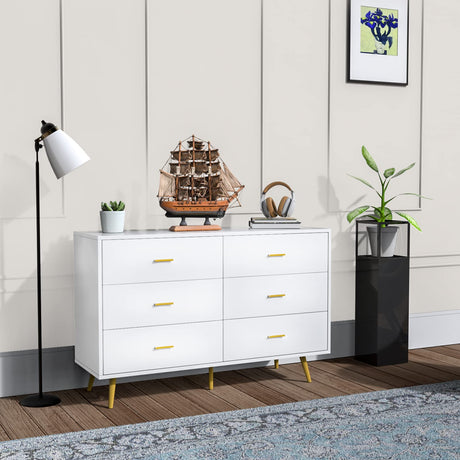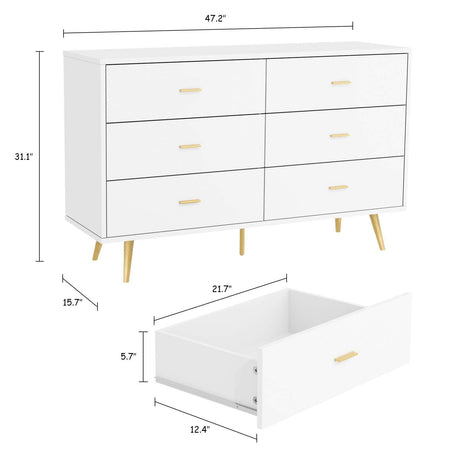 6-Drawer Double Dresser with Wide Drawers,White Dresser for Bedroom