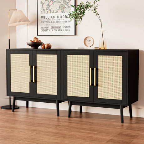 Buffet Cabinet, Rattan Cabinet, Set of 3, Storage Cabinet with 2 Doors