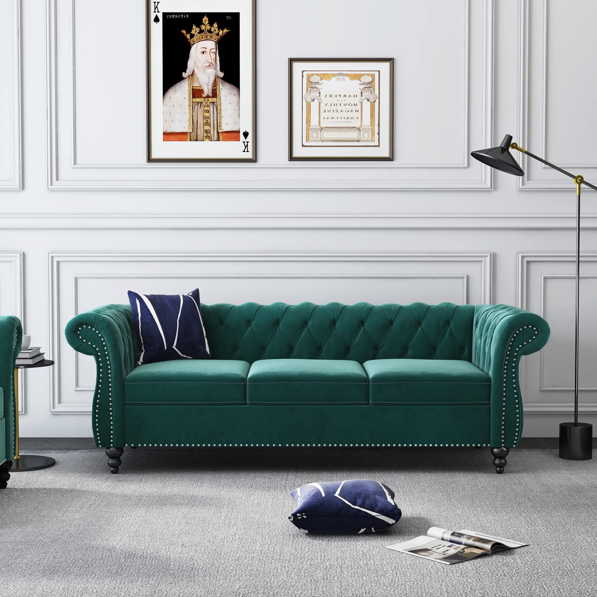 Chesterfield Classic Sofa, Modern Velvet 3 Seater Sofa, Upholstered Tufted Back Settee