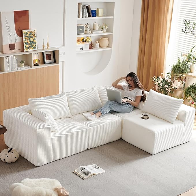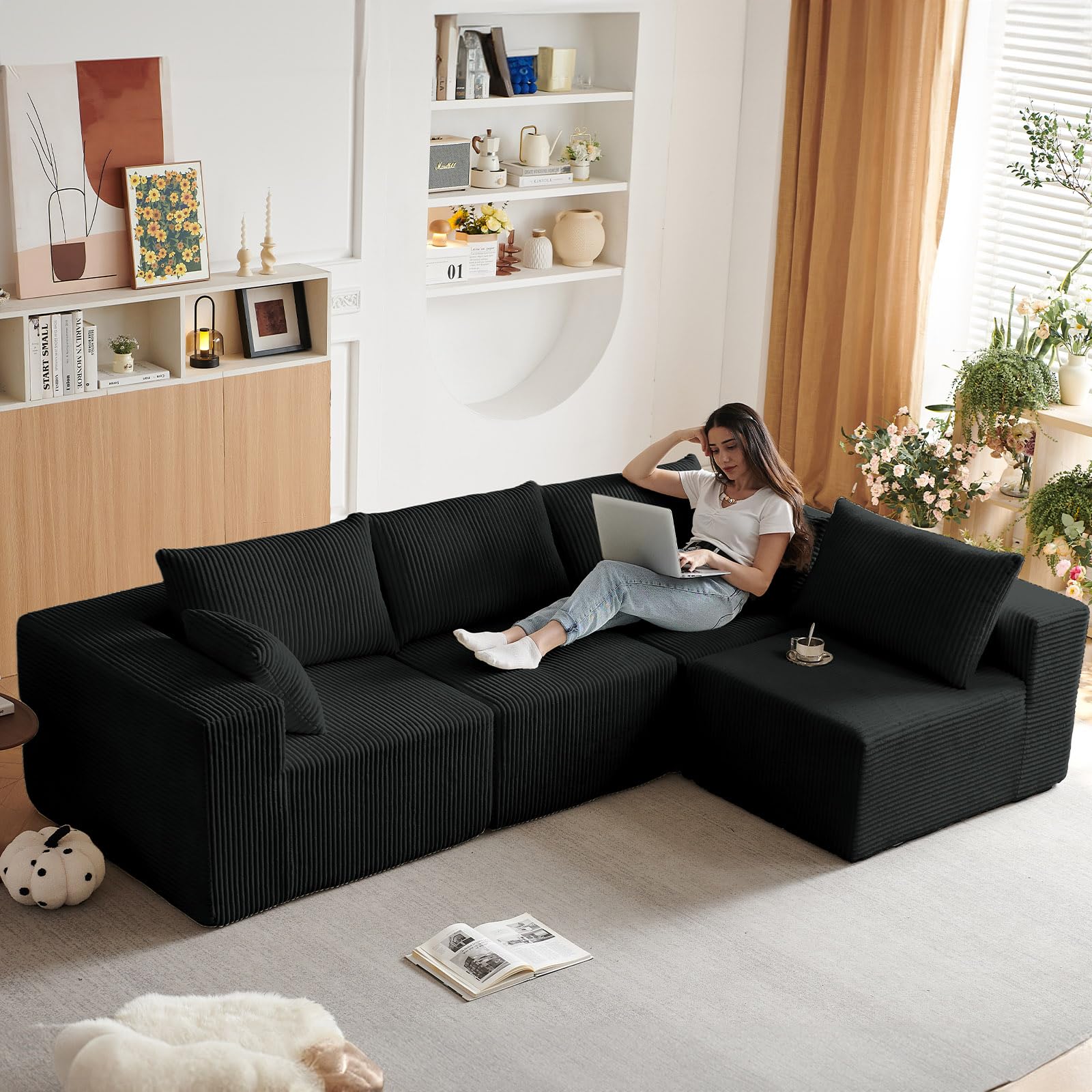 - Modular Combination Sofa: Discover the adaptability of our minimalist modular sofa, which is designed for flexible configuration to suit your lifestyle. This L-shaped combination set consists of 4 pieces and maximizes space efficiency when placed against the wall. Whether used as a sofa or a sofa bed, it provides unlimited layout options to suit your comfort and style