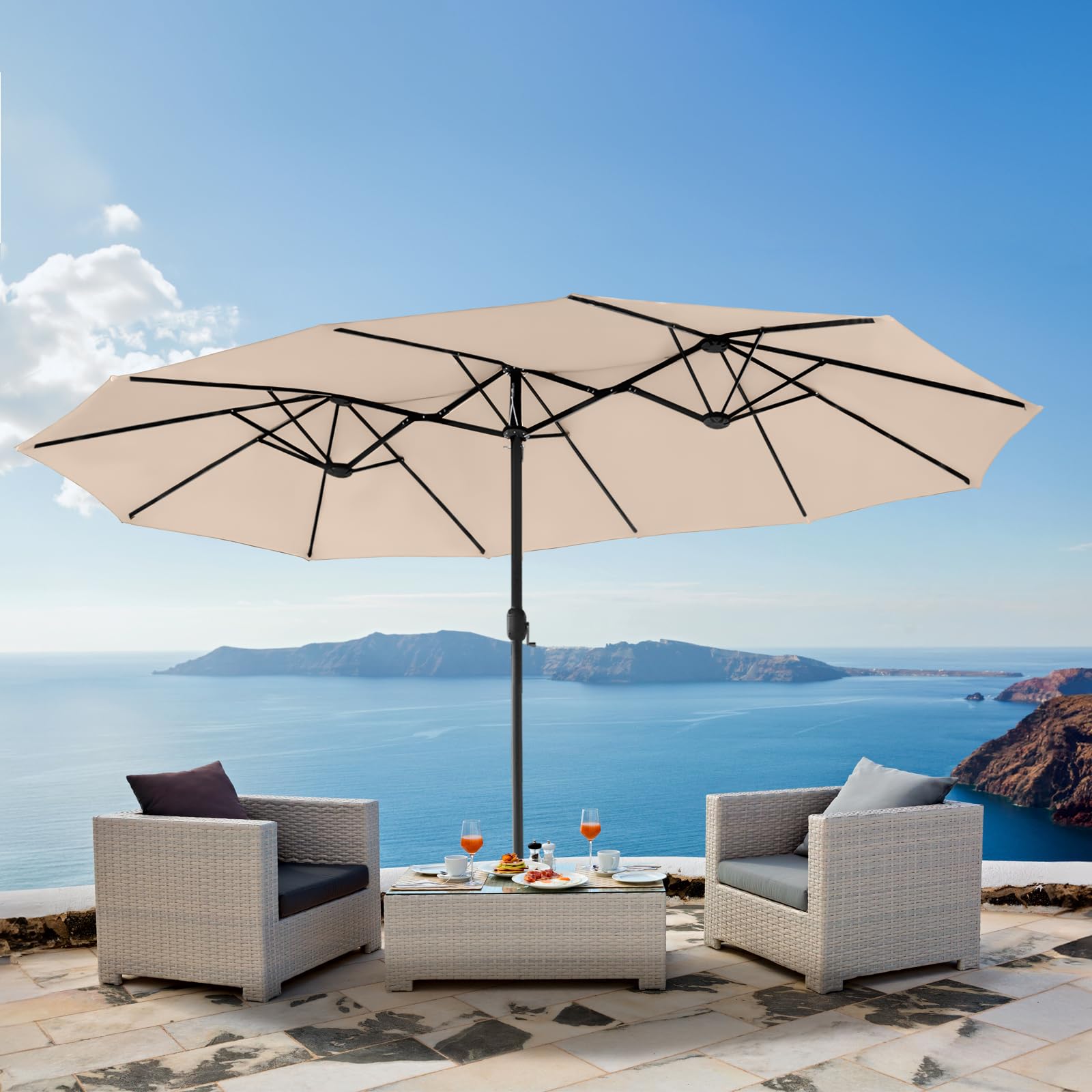 - Extra Large Patio Umbrella - 15 FT double sided patio umbrella offers large area coverage and protection from the UVS for you, perfect for backyard, poolside, balcony