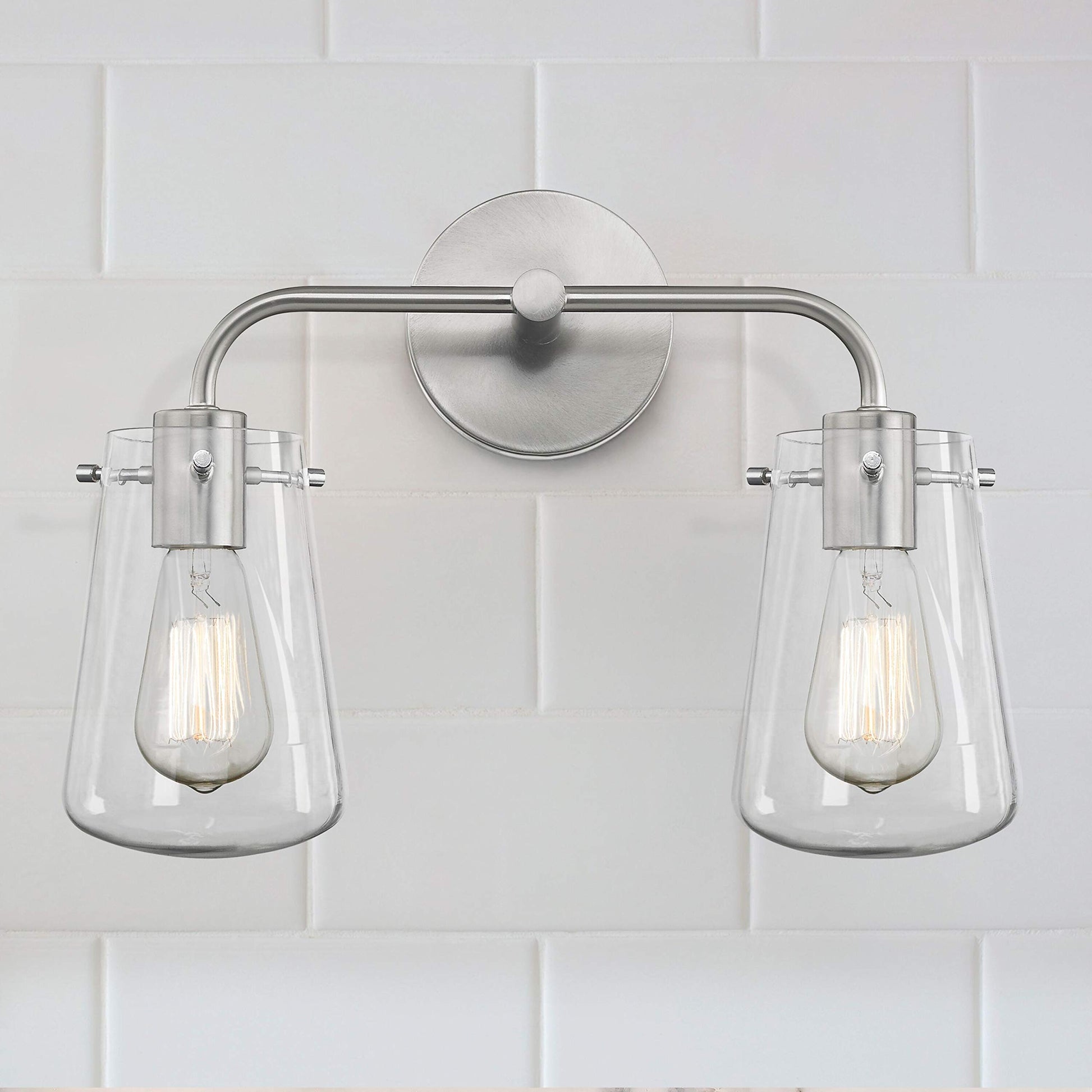 2-Light Clear Glass Bathroom Light Satin Nickel