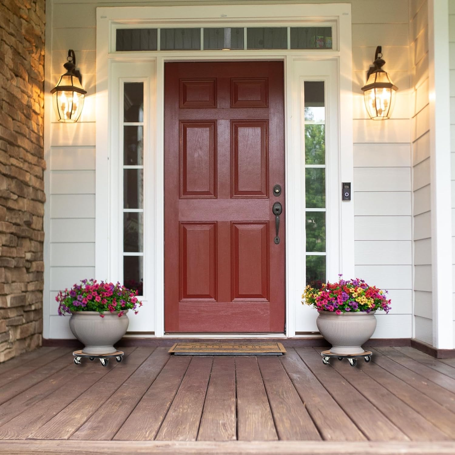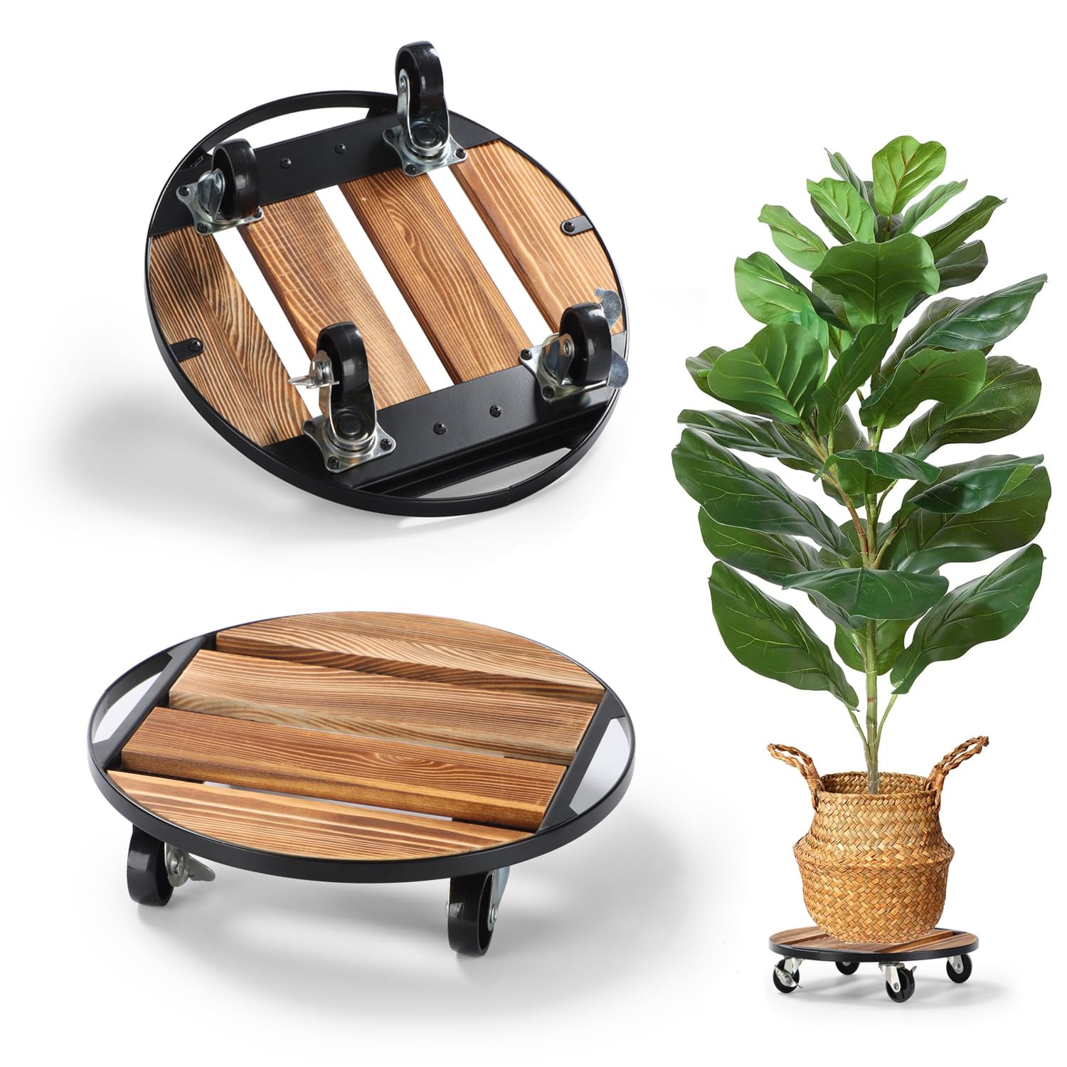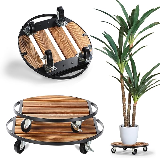 - The rolling plant stand with 4 heavy duty wheels can roll smoothly and rotate 360°. Even heavy flowerpots can be easily moved around the house. 2 lockable wheels allow you to lock the flower/plant in place to prevent sliding.