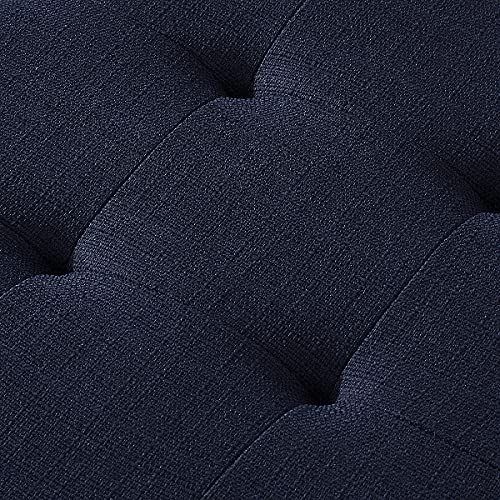 Large Rectangular Upholstered Tufted Linen Fabric Ottoman Bench, Padded Bench