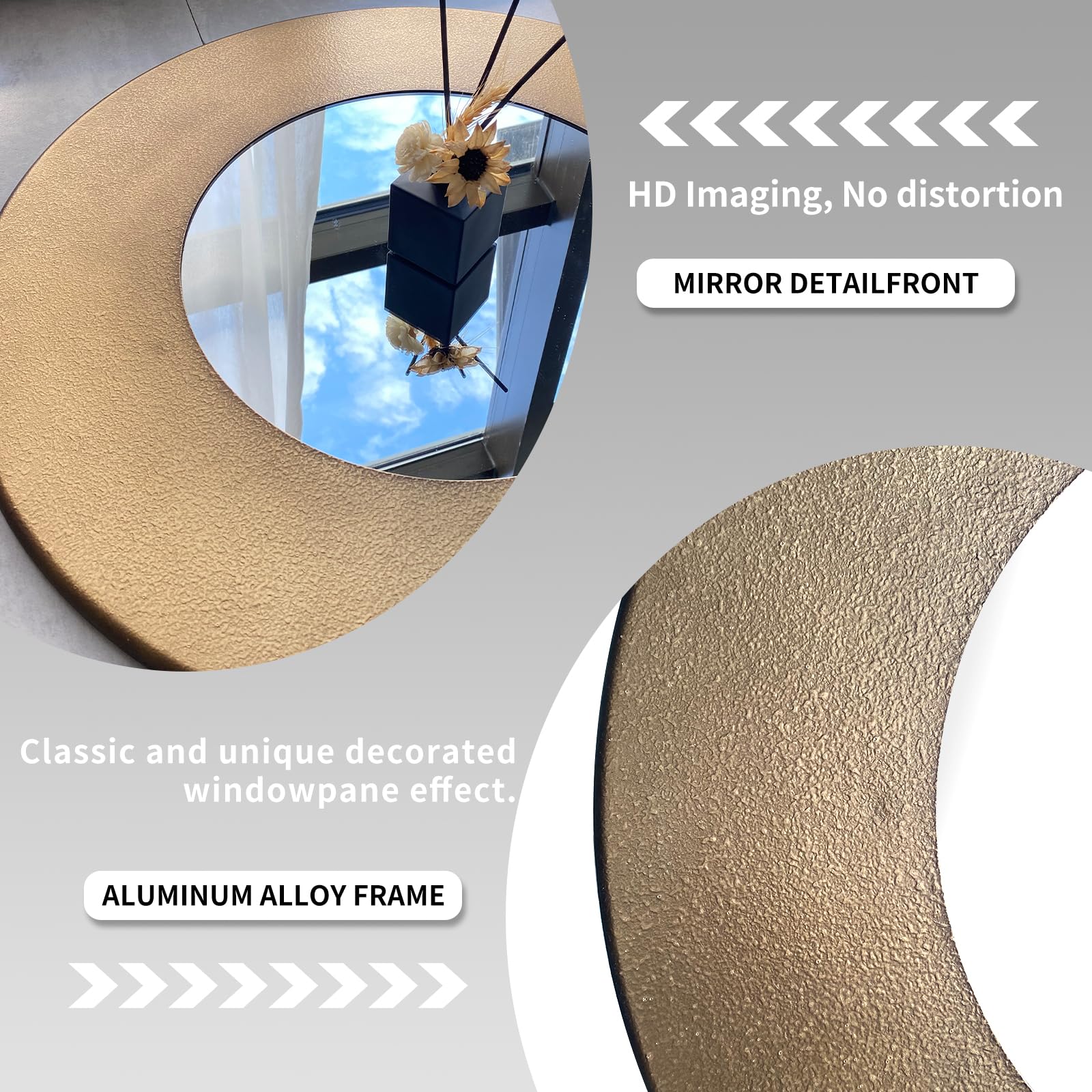 The generous 27-inch diameter provides a full view while the vintage bronze finish adds warmth and character to your walls. Easy to mount and built to last, this mirror transforms ordinary spaces into sophisticated sanctuaries.