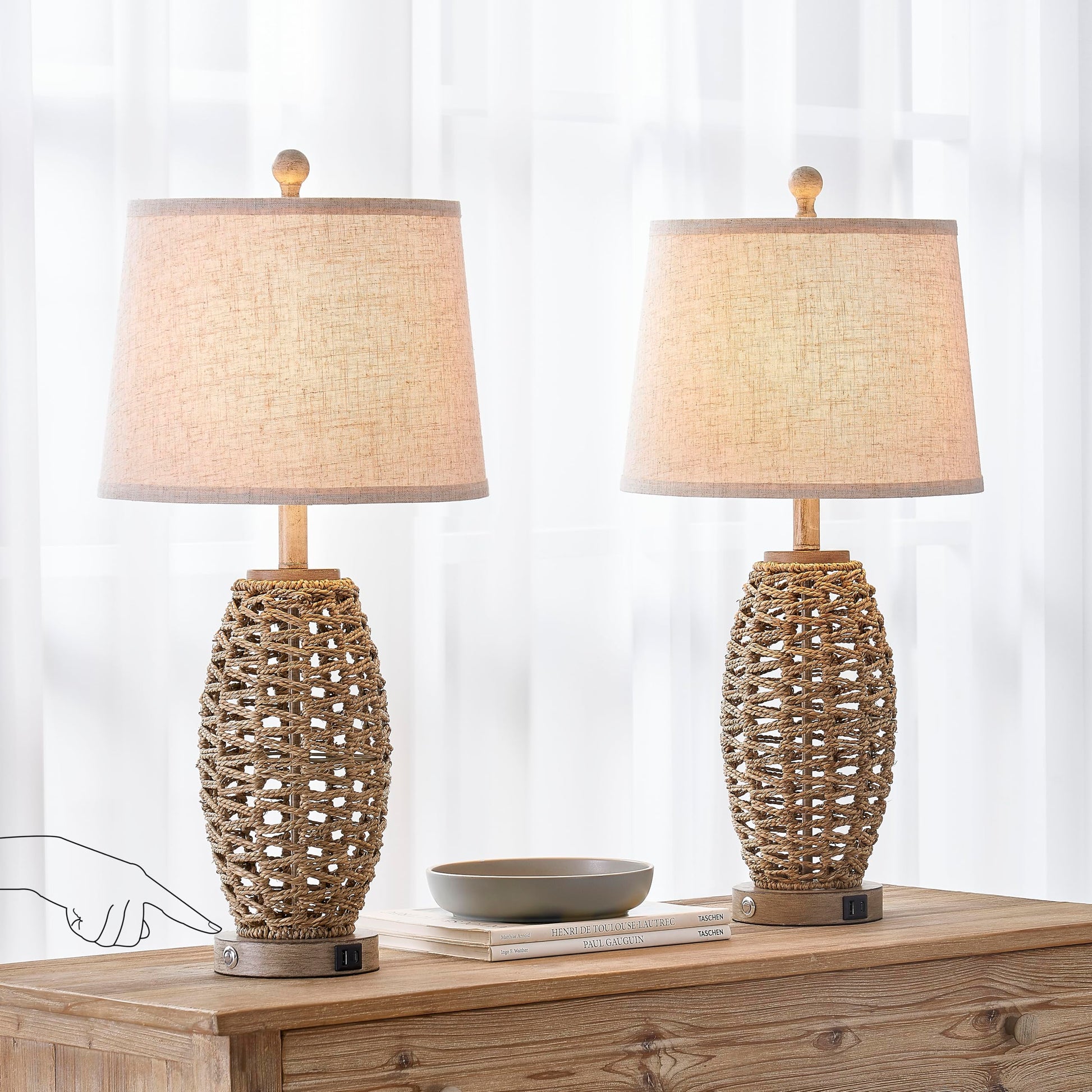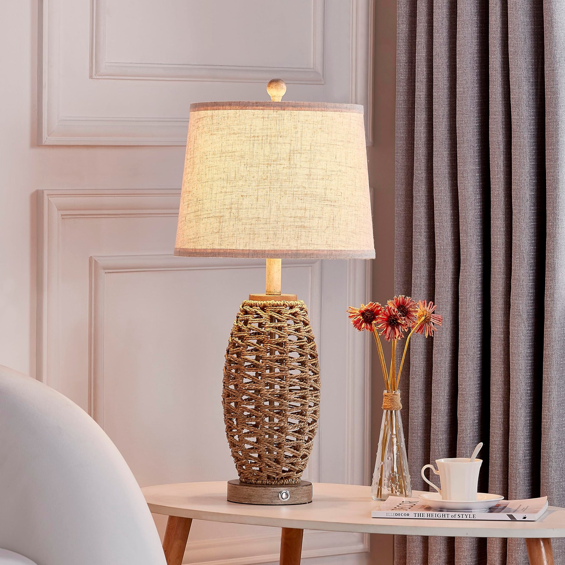 27” Natural Rattan Table Lamps Set of 2,Touch Switch,3-Way Dimmable Bedside Lamps