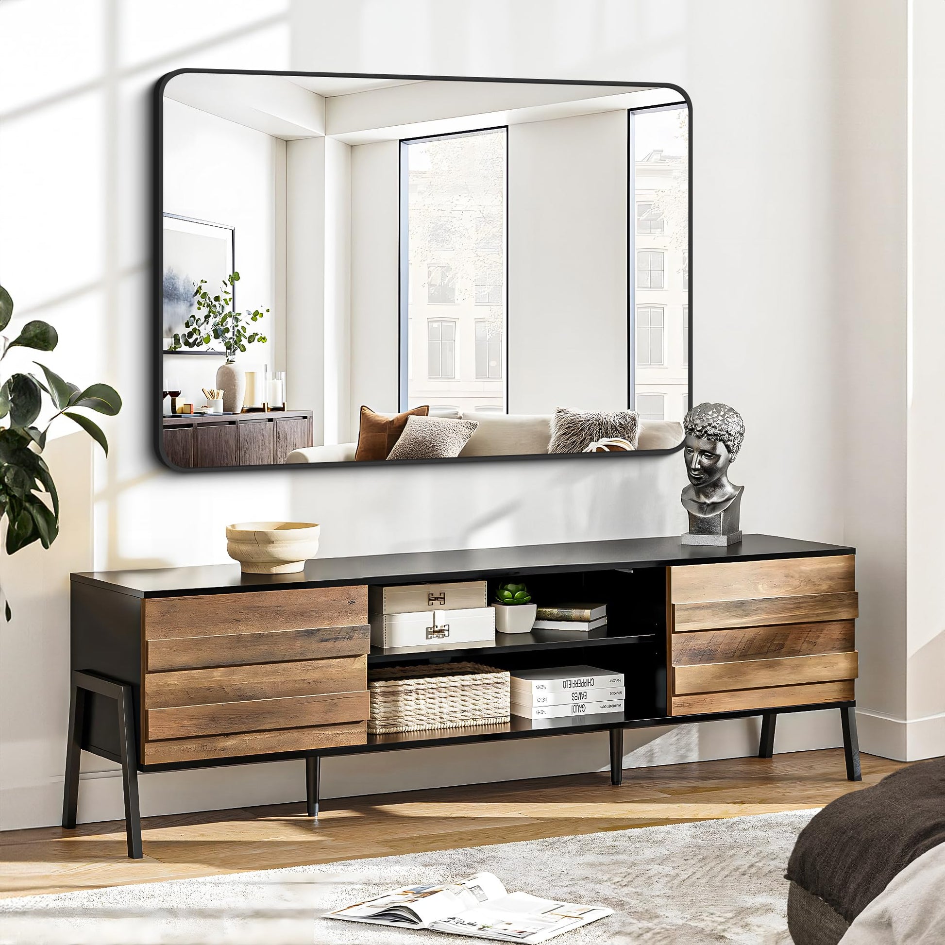 Transform your space with this elegant 30" x 40" black metal framed mirror, featuring sophisticated rounded corners and versatile mounting options. Perfect for bathrooms, bedrooms, entryways, and living spaces, this contemporary wall mirror combines durability with timeless design.
