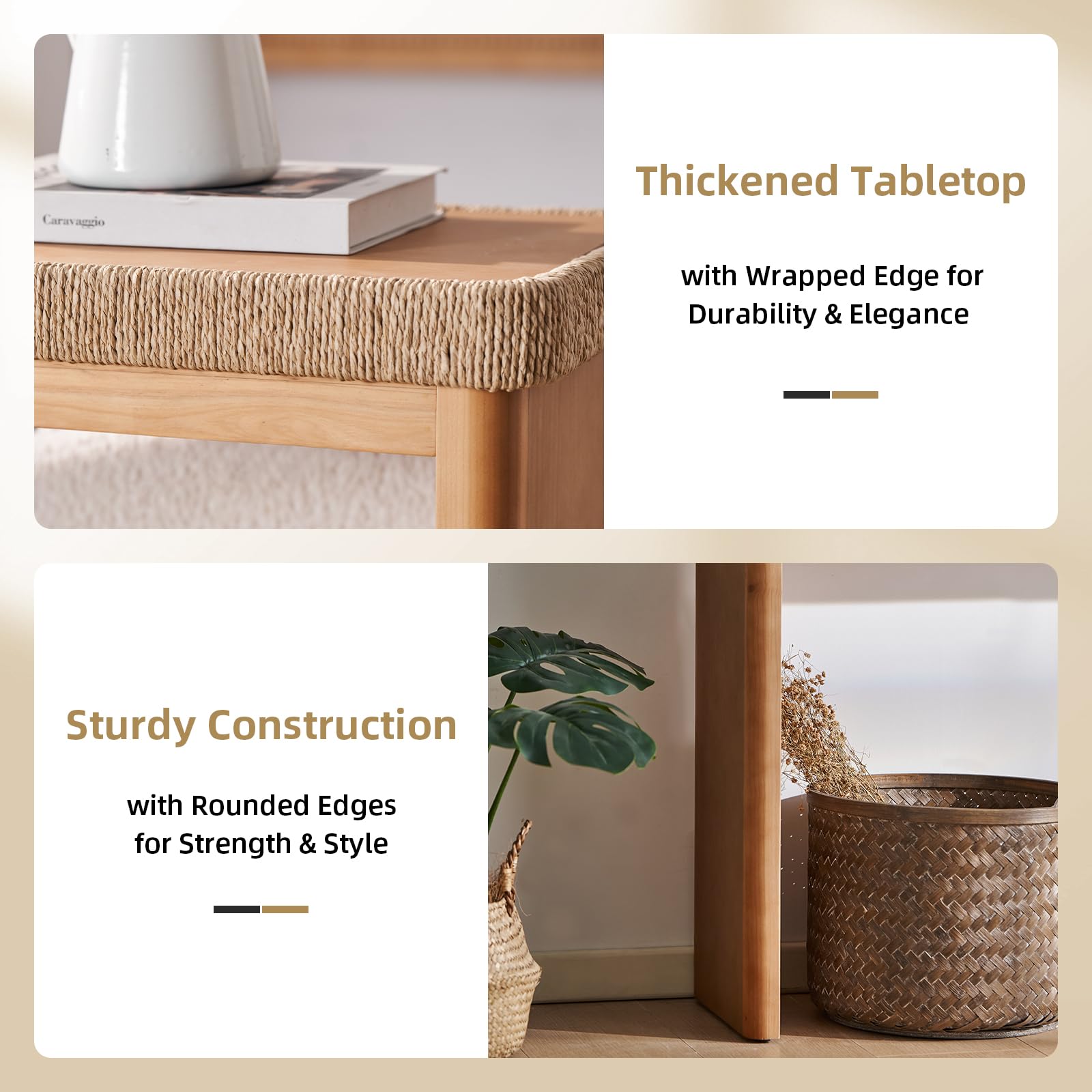 Elevate your entryway, living room, or hallway with this beautifully crafted 43-inch farmhouse console table. Featuring natural wood construction and elegant rattan decorative accents, this versatile piece brings warmth and bohemian charm to any space.