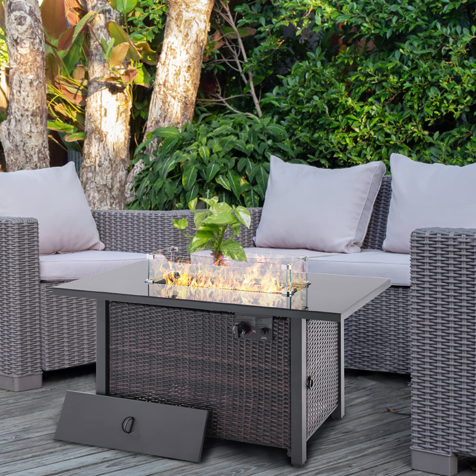 43 Inch Propane Fire Pit Table, 50,000 BTU Rattan Gas Fire Pit Table