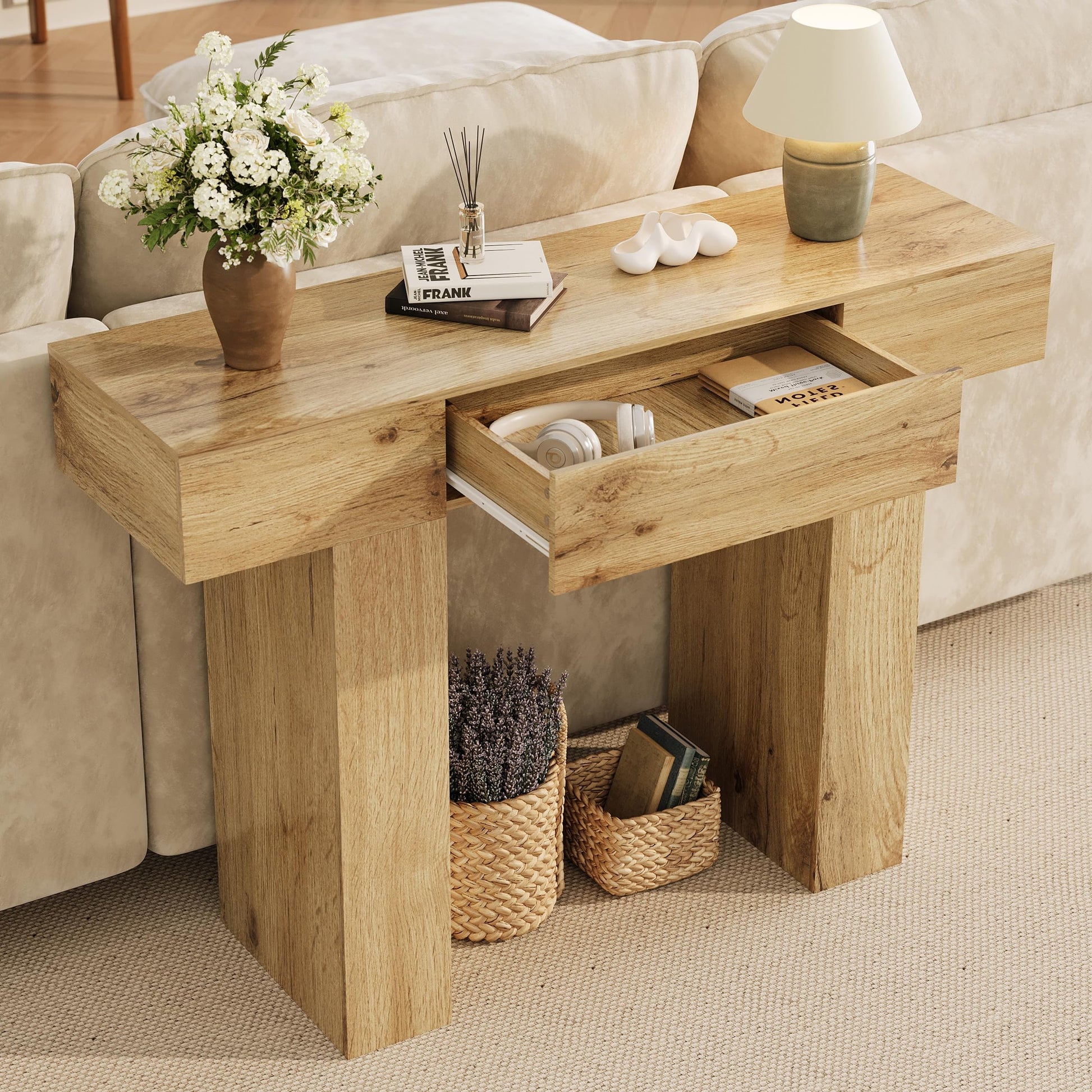 Perfect for creating a welcoming first impression in your entrance or adding sophisticated style behind your sofa, this console table transforms empty wall space into a curated display area for lamps, photos, plants, and cherished décor.