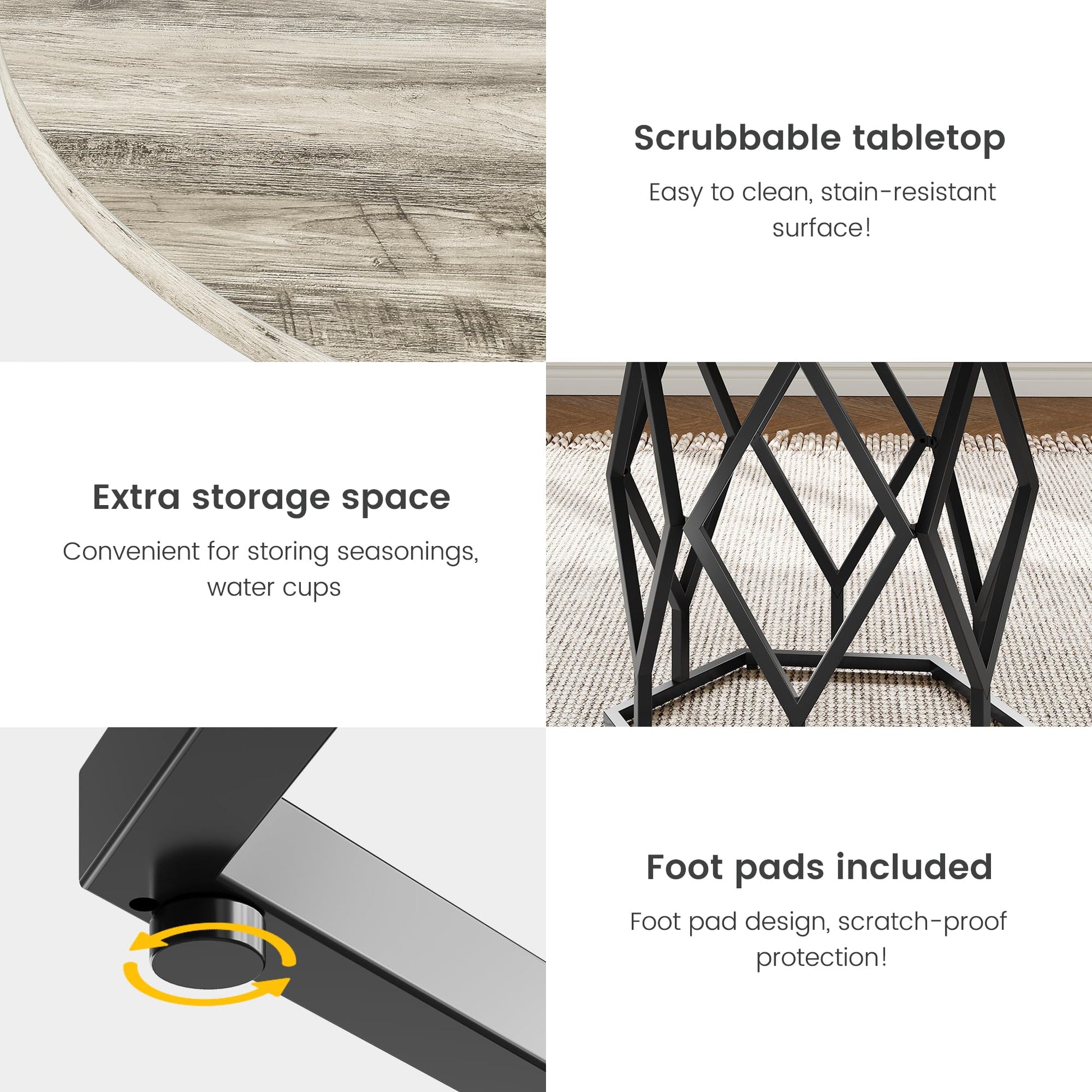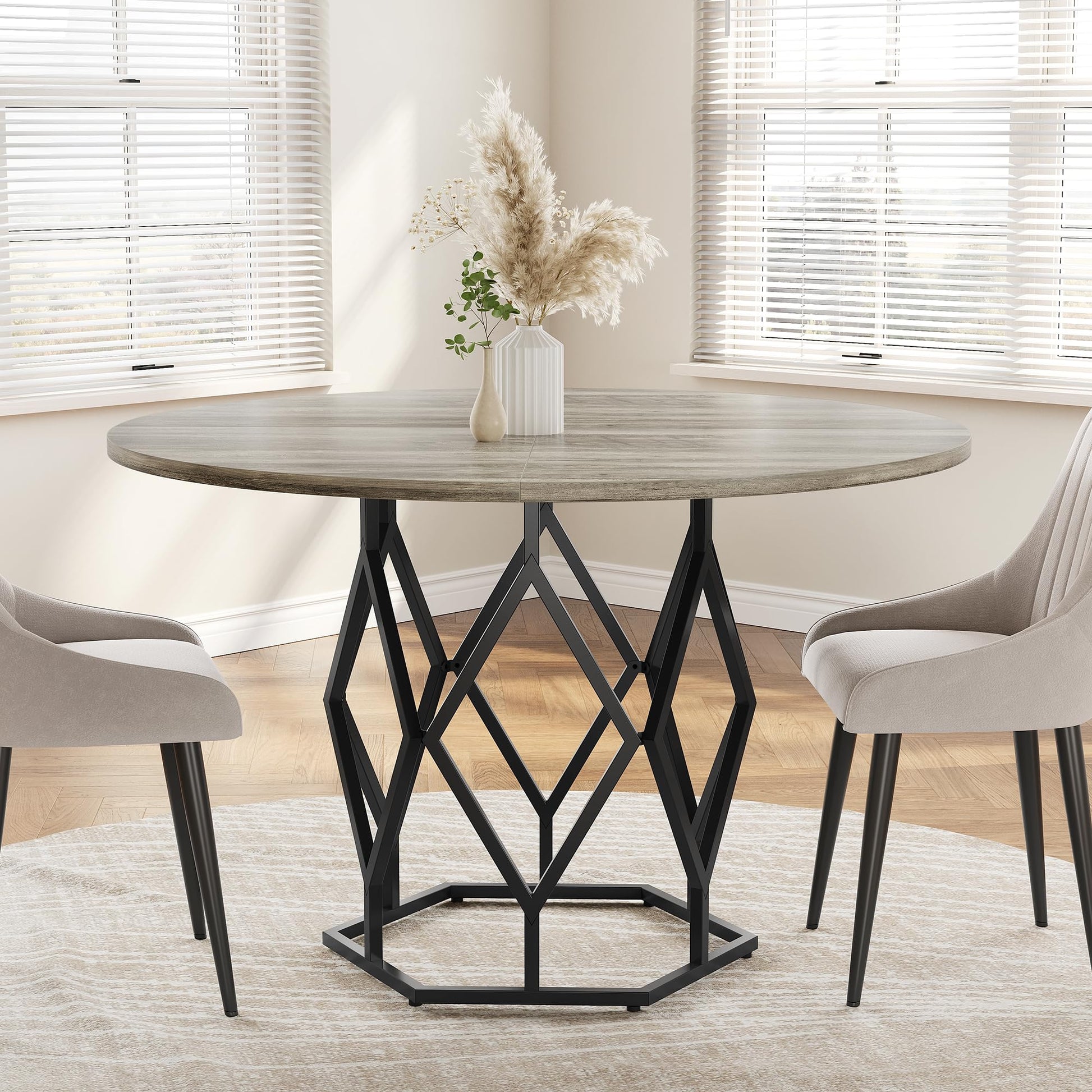 Transform your dining space with this stunning 47-inch round dining table that seamlessly blends industrial charm with farmhouse elegance. Designed to comfortably seat 4-6 people, this versatile piece creates an inviting atmosphere for family meals, entertaining guests, or casual gatherings.