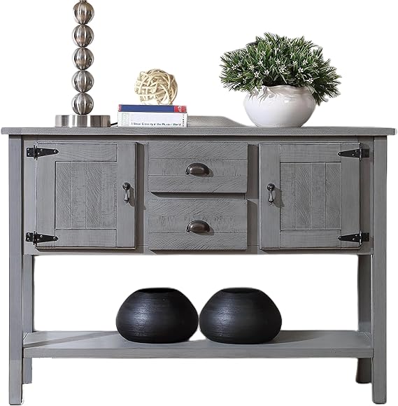 - Size & Space: The console table measures 48 inches, providing ample storage space with its two drawers and two cabinets. The top board and bottom shelf offer additional space to display various items such as fruit, tableware, plants, and glassware.