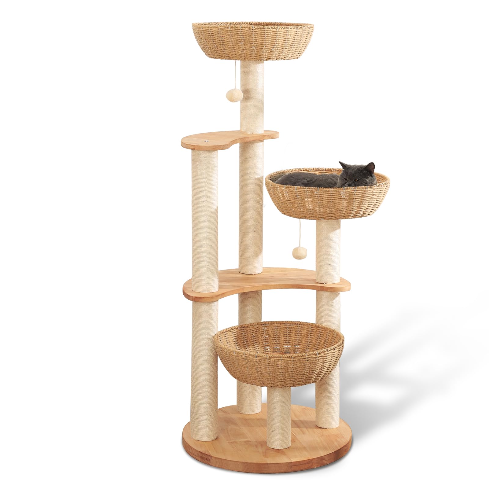 - Natural Materials This wood cat tree is made of Oak, Kraft Paper Pillar, 8 cm Natural Sisal Rope, and Handwork Ma Teng Cat's Nest with crafted workmanship, ensuring long service life. Each scratching post is covered by natural sisal ropes that cats can scratch to protect your delicate furniture. In addition.
