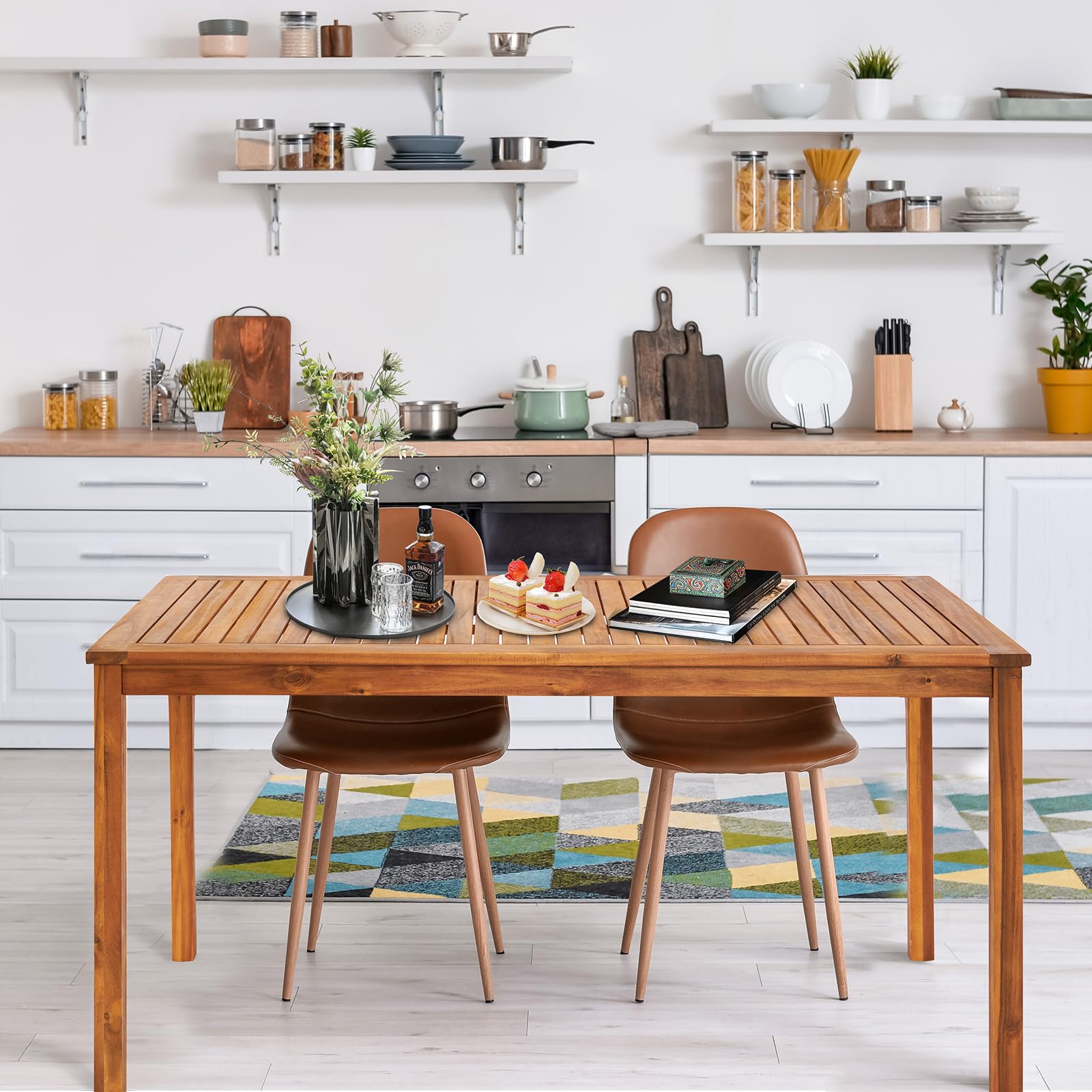 Elevate your outdoor entertaining with this stunning 57-inch rectangular dining table crafted from premium acacia wood. Built to withstand the elements while maintaining its natural beauty, this table brings warmth and sophistication to any deck, patio, or garden setting.