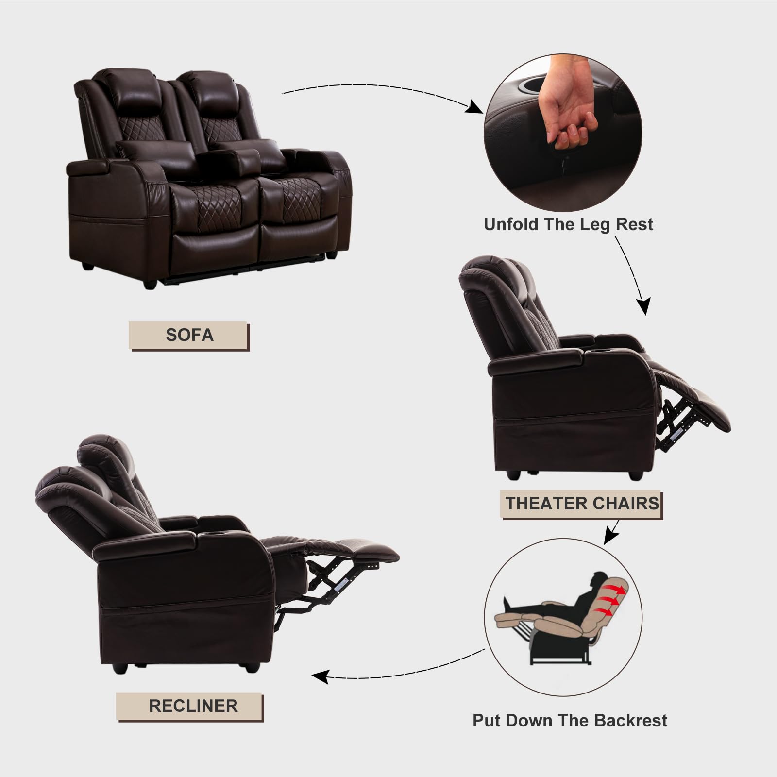 - Multi-Functional Reclining: Features dual reclining seats with independent controls and memory foam head/lumbar support for optimal relaxation.