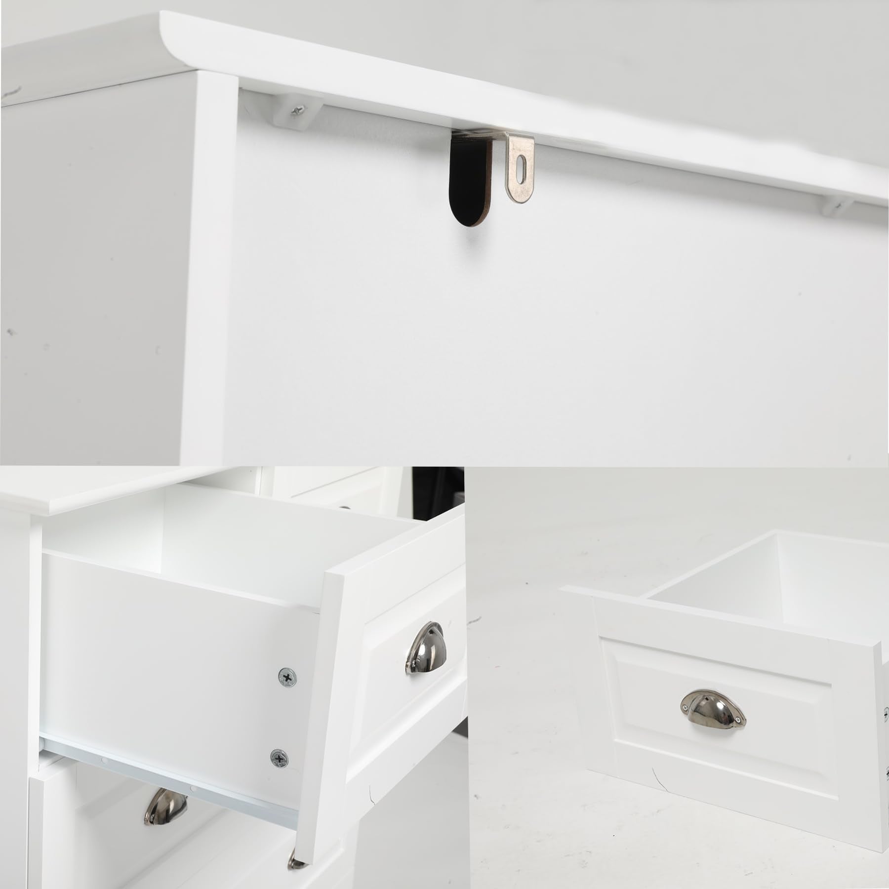 - The premium finish gives the white bedroom dresser a modern simple style. This storage dresser could easily fit in various living spaces: living rooms, bedrooms, hallways, entryways, closets and nurseries, etc.