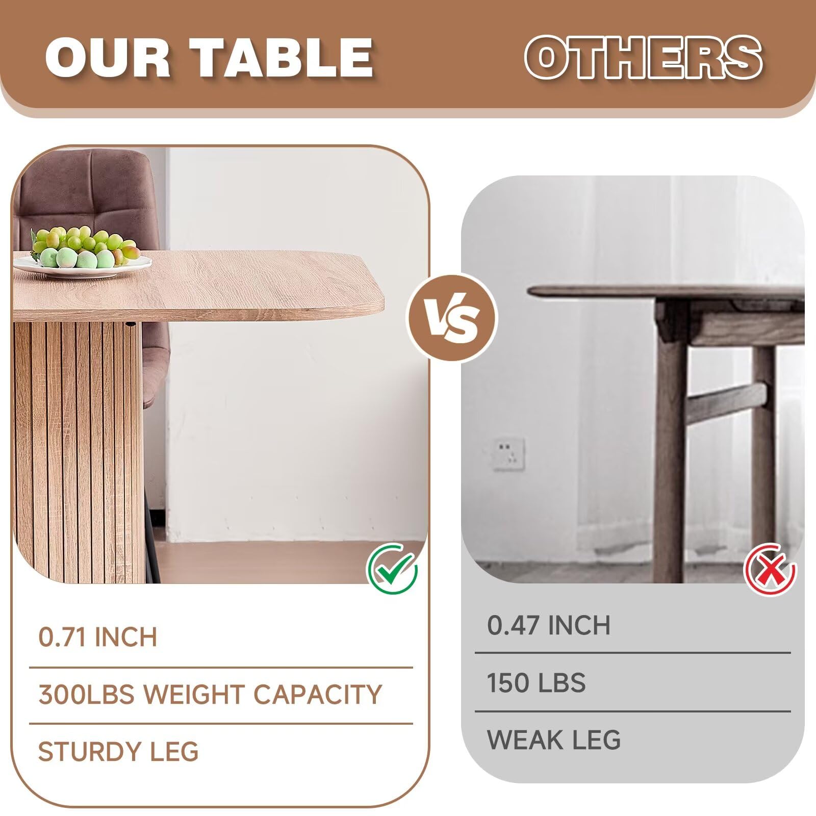 - Distinctive wood strip pedestal base provides superior stability