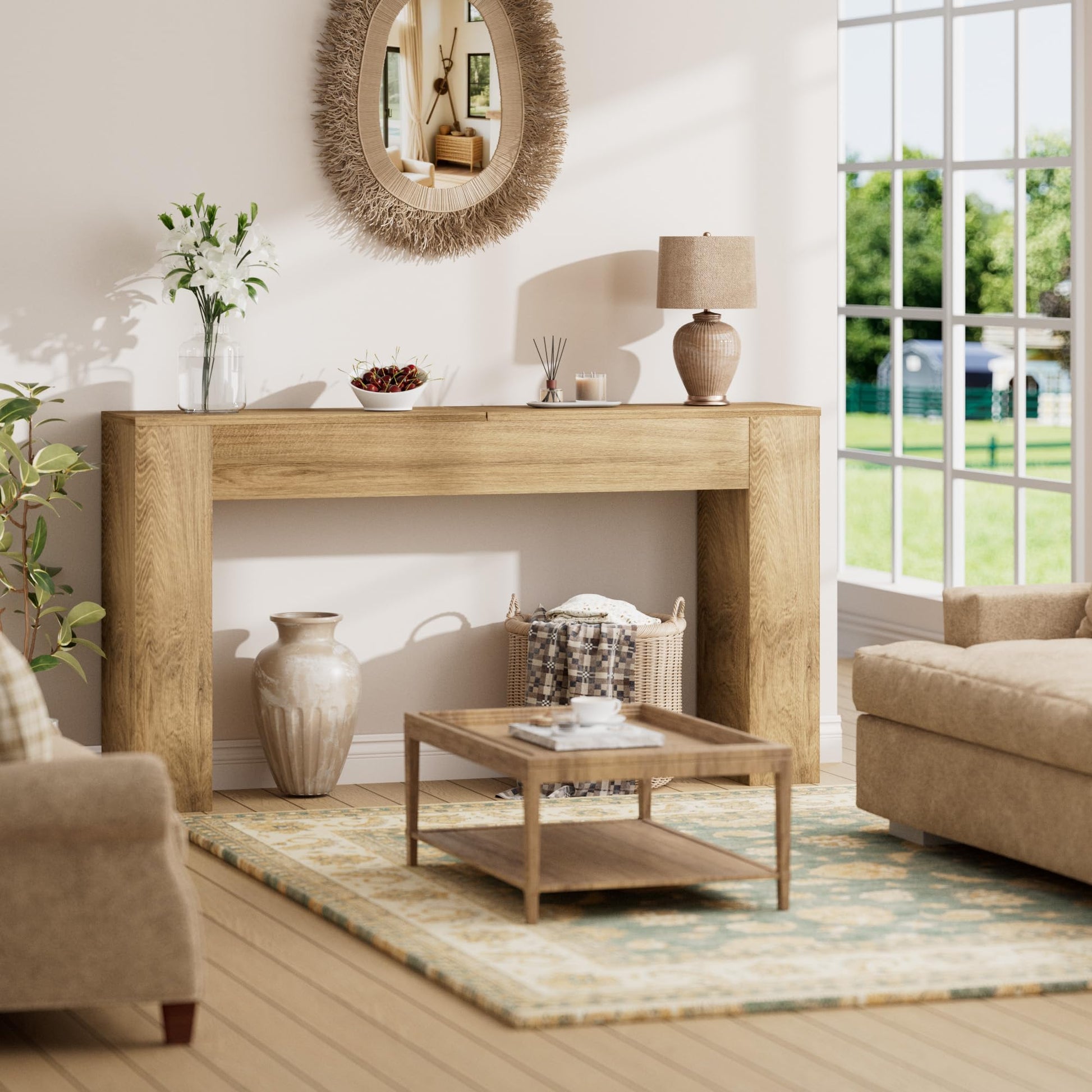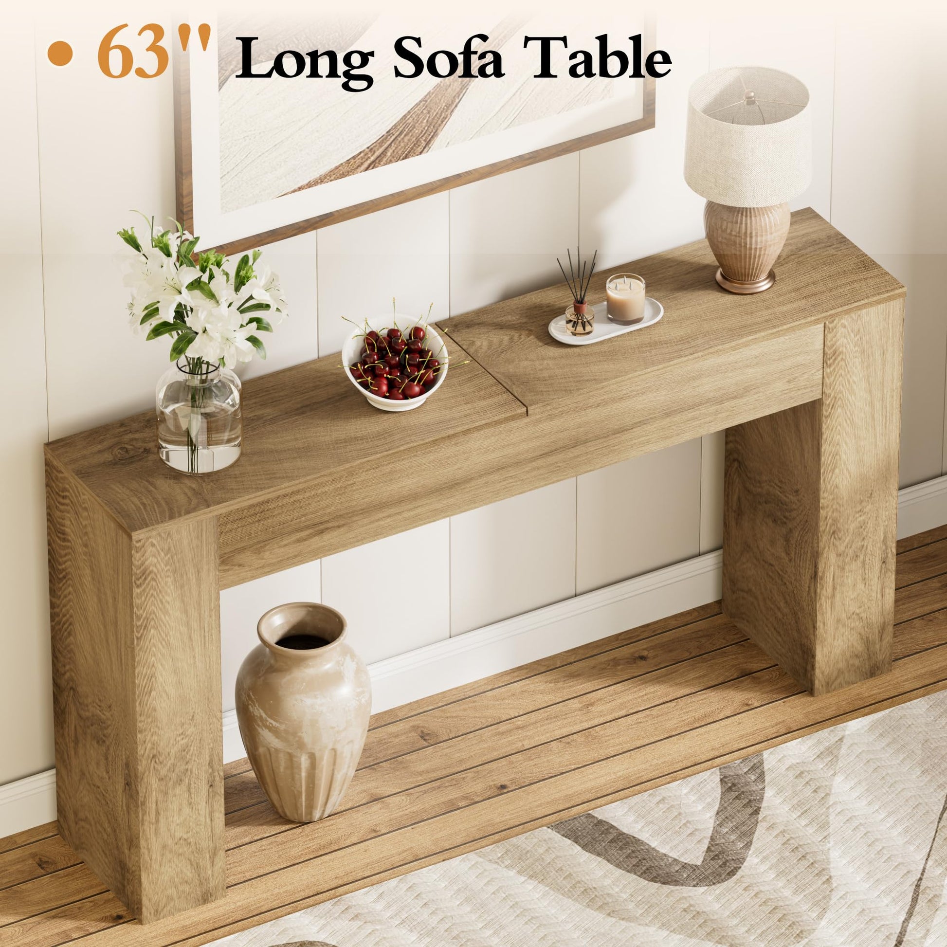 Transform your entryway, living room, or hallway with this elegant 63-inch wood console table. Featuring a timeless farmhouse design and heavy-duty construction, this versatile accent piece seamlessly blends form and function.