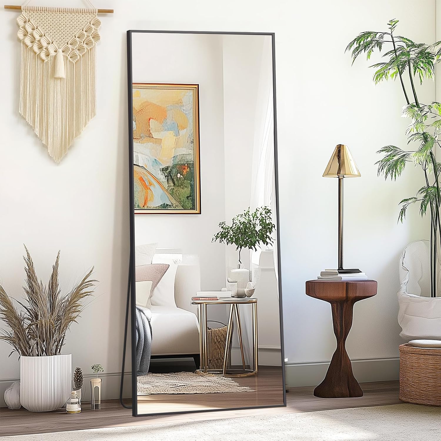 Transform your space with this elegant full-length hanging mirror, designed to enhance any room with both functionality and sophisticated style. The sleek black aluminum frame provides durability while complementing modern, contemporary, and traditional décor.