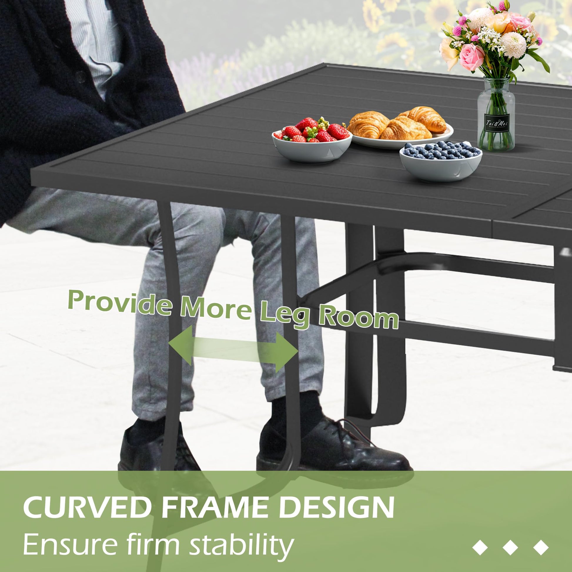 - Weatherproof Durability for Year-Round Use: Crafted to withstand the elements, our dining set features a weather-resistant tabletop that endures sun, rain, and temperature fluctuations. The industrial-grade steel frame is coated with rust-resistant powder, ensuring long-lasting performance. The reinforced grid-pattern tabletop supports up to 300 lbs, making it sturdy enough for any gathering. Enjoy peace of mind knowing your furniture will maintain its elegance and strength season after season.Table dimensions: 63" x 35.8" x 29.5".