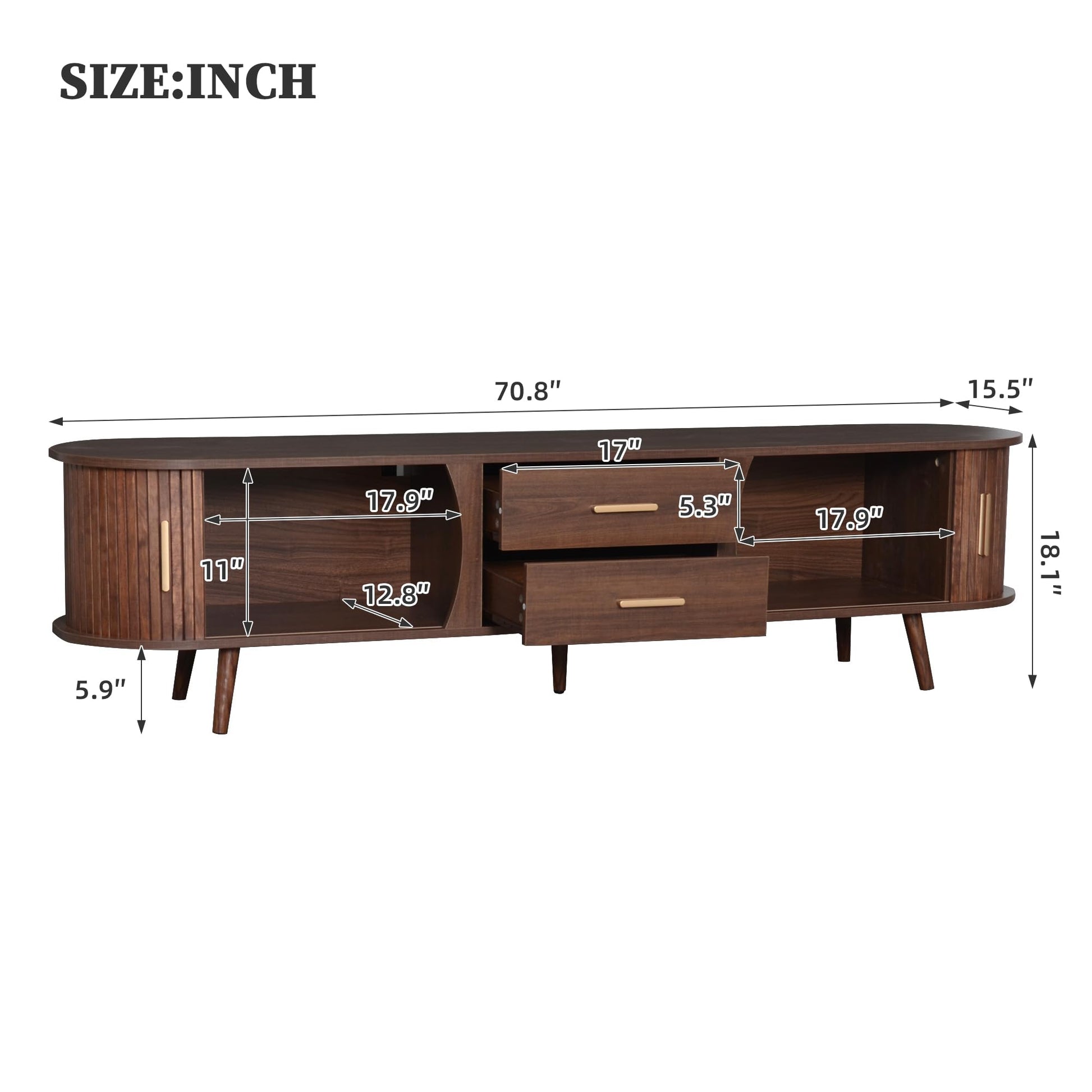 Elevate your living space with this sophisticated 70-inch curved media console that seamlessly blends form and function. The distinctive fluted design and warm walnut finish create a stunning focal point while providing ample storage for all your entertainment essentials.