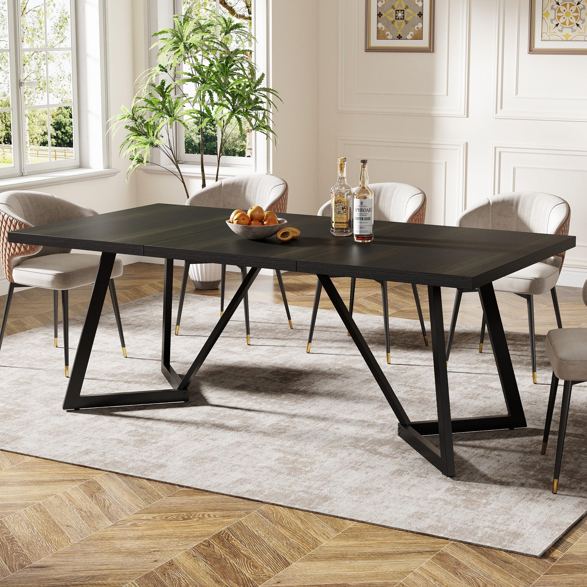 Elevate your dining space with this modern rectangular dining table, designed to comfortably seat 6-8 guests. Featuring a sleek black finish and durable metal frame construction, this statement piece combines contemporary style with exceptional functionality for your home dining room.