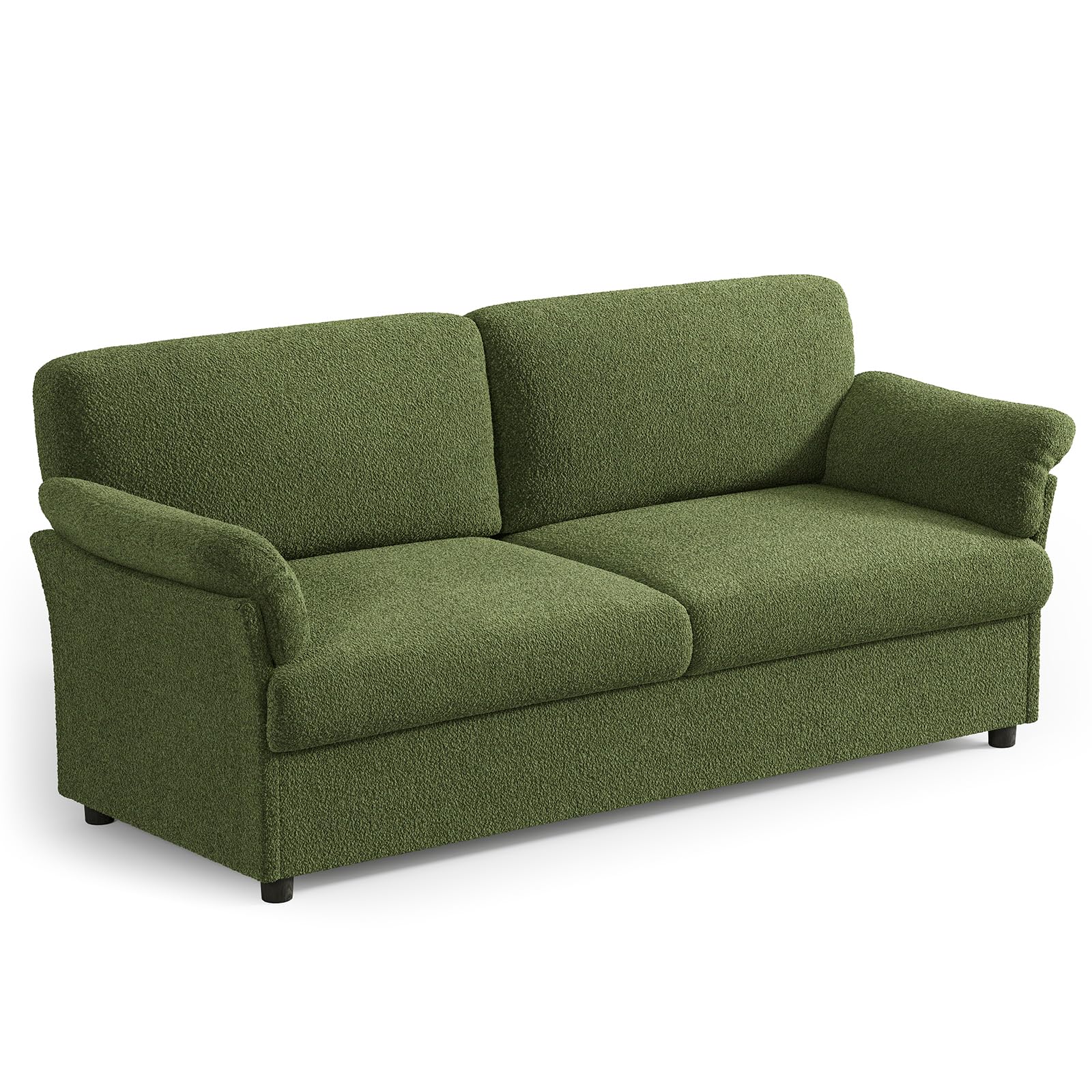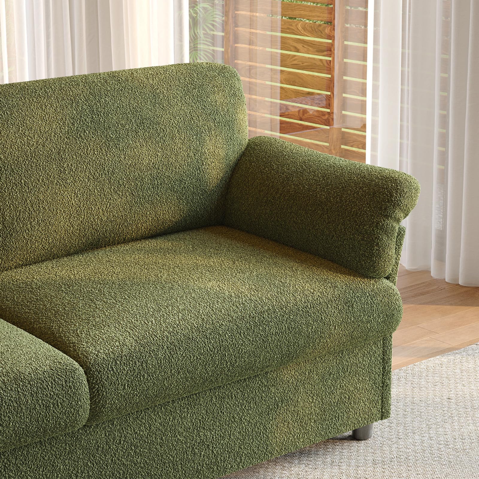 - Our green small couch sofa is crafted from high-quality lambs wool fabric, boasting a unique texture that enhances its aesthetic appeal. This thoughtful design simplifies maintenance while promising a long-lasting charm, ensuring the enduring allure of its fleece beauty remains intact over time