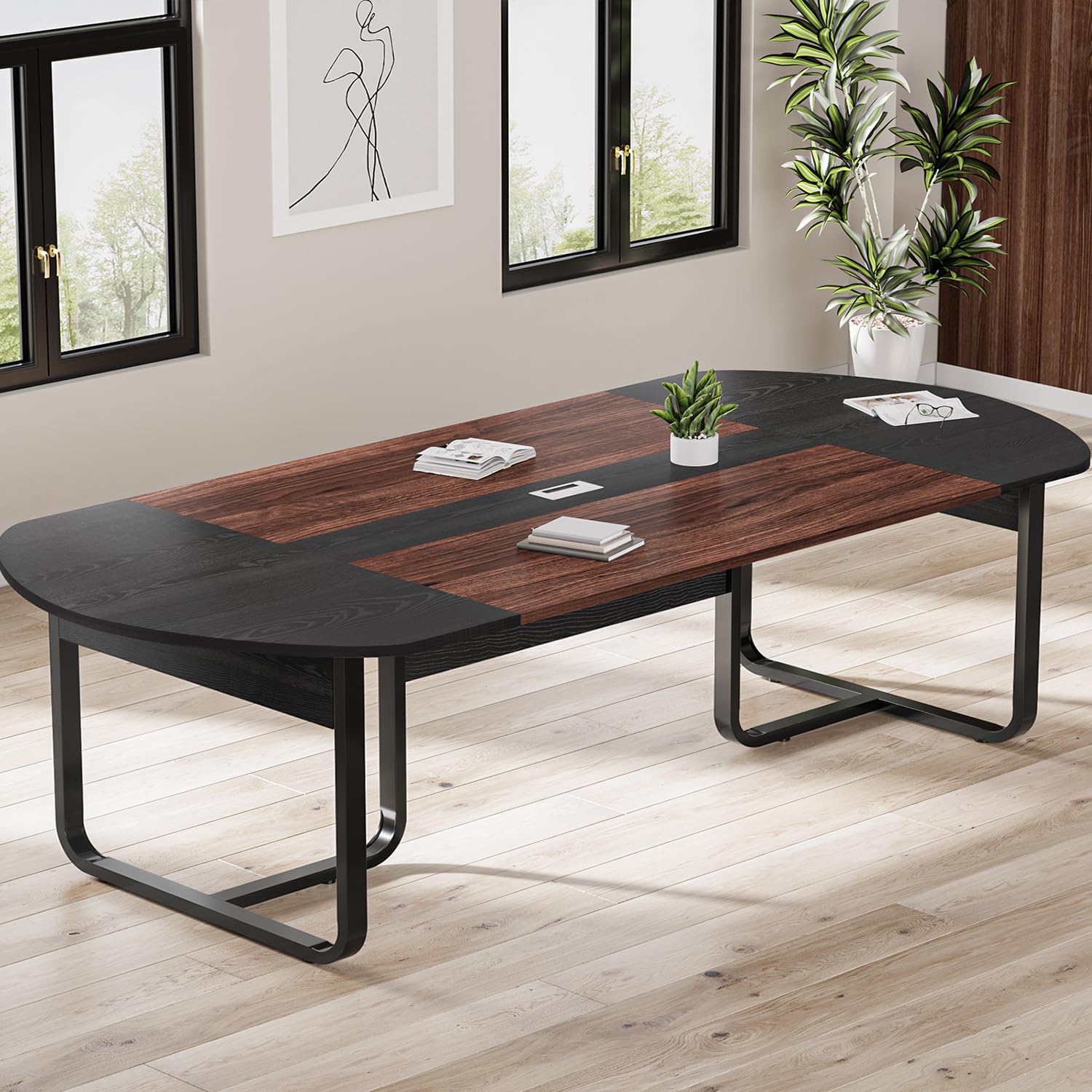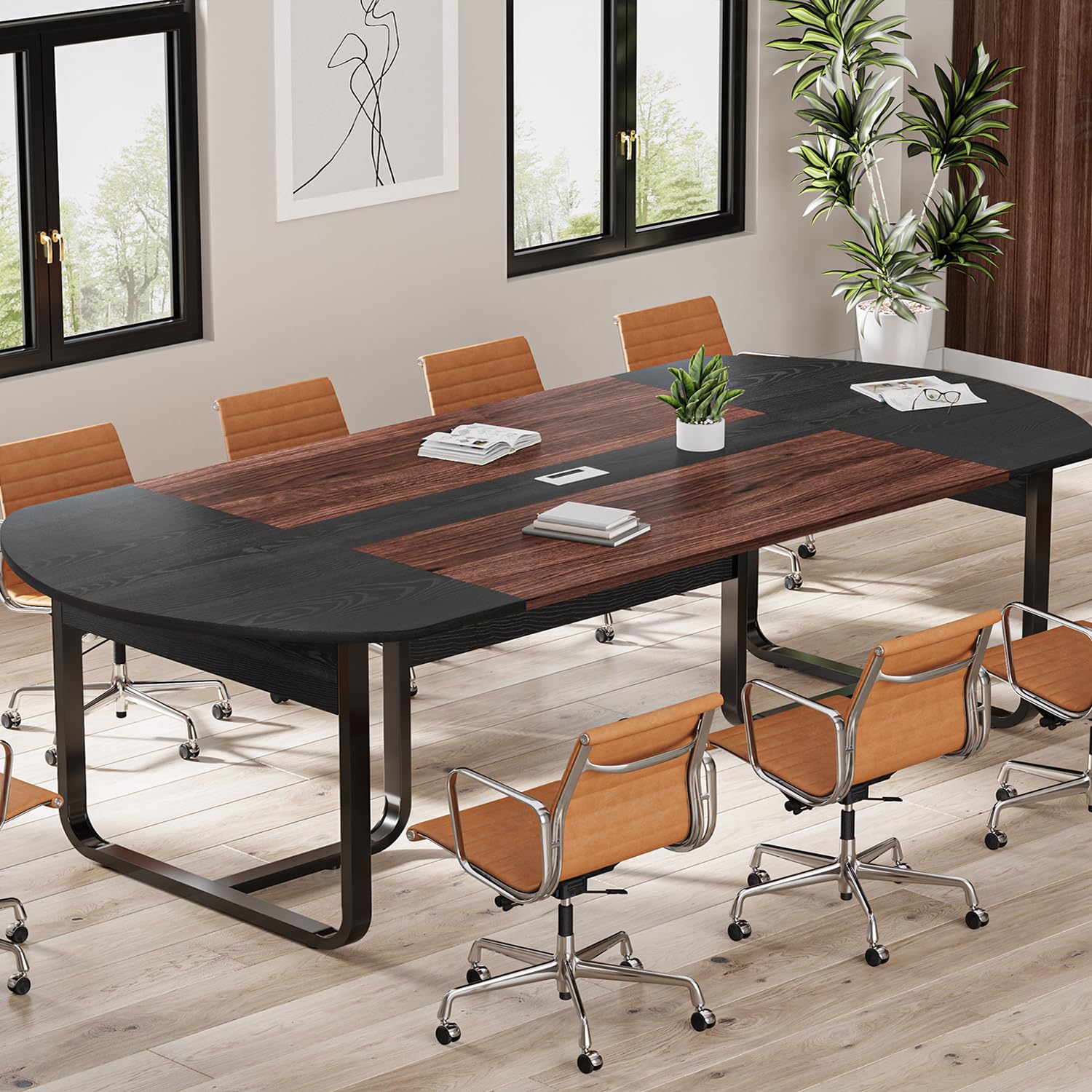 - This conference table features beautiful walnut and black wood grain paired with simplicity and comfort, making our conference table look great. This conference table is perfect for your modern private spaces and meeting rooms. Meanwhile, the curved design of the conference table top allows your team to focus on everyone around the table.