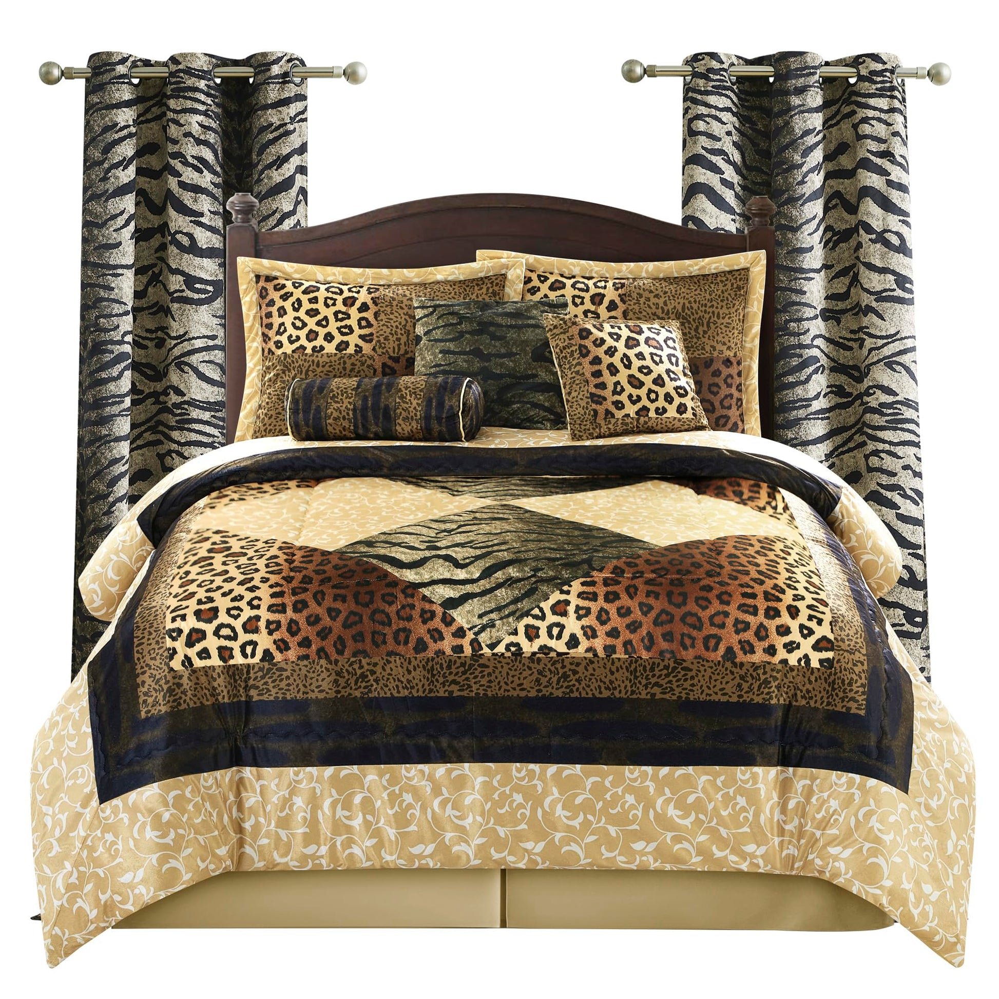 9 Piece California King Comforter Set - Leopard Print Safari Bedding Collection