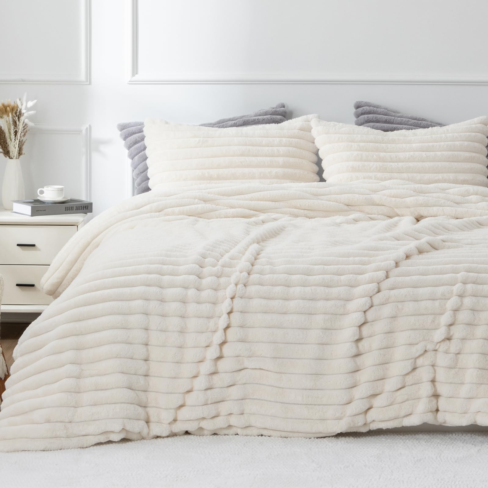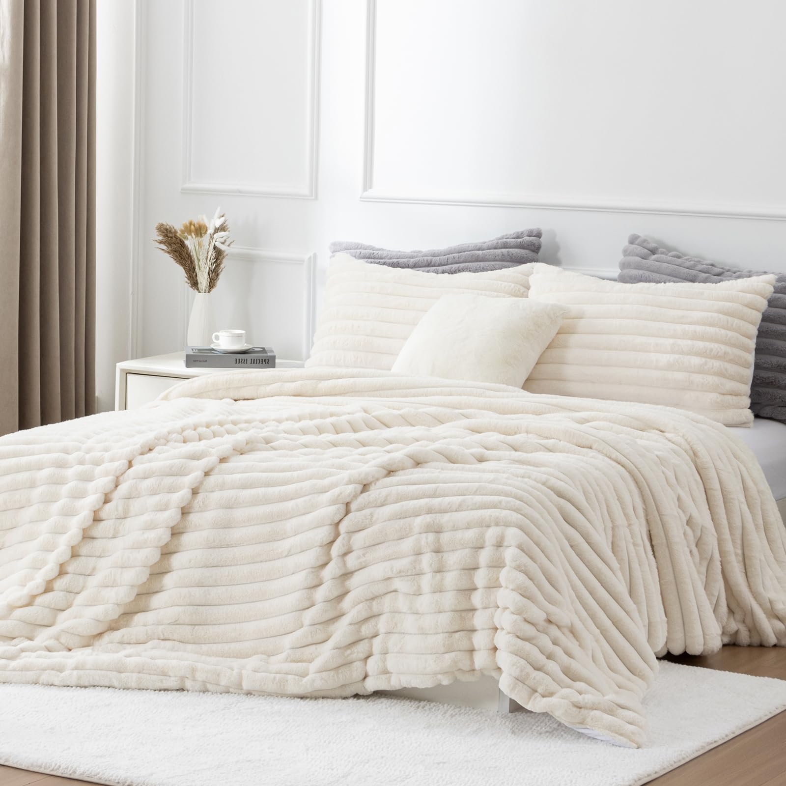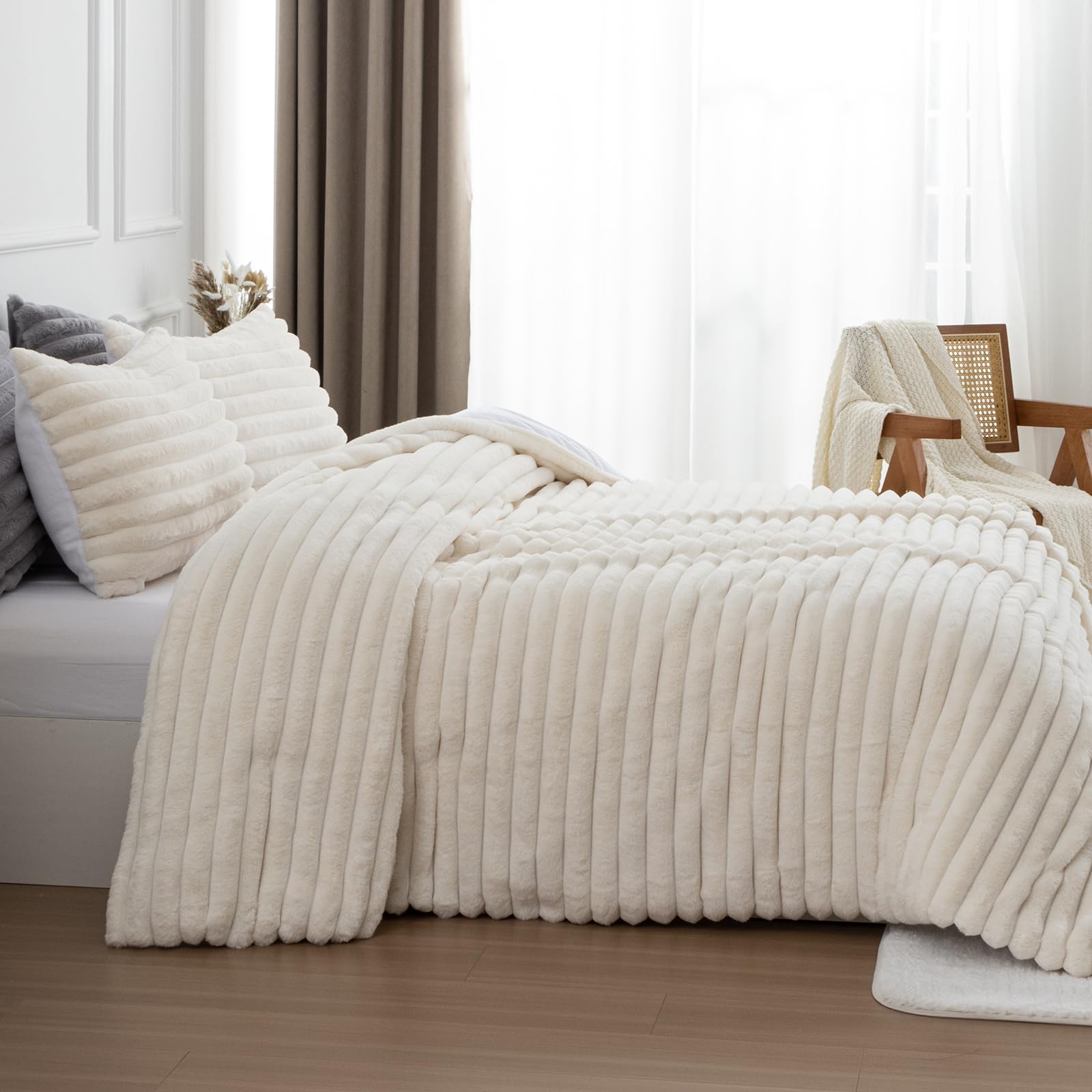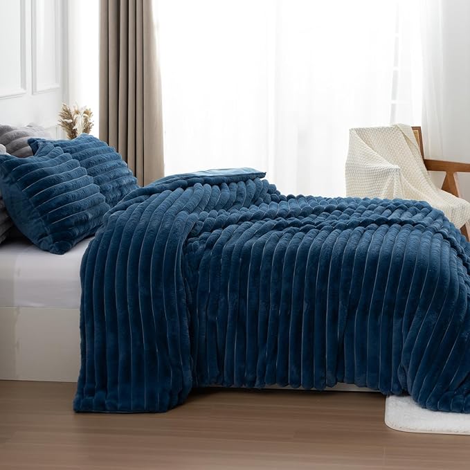 - Cozy Warmth: Super soft feeling similar to real fur,the striped flannel comforter set boasts an incredibly soft flannel texture on both sides, keeping you warm and cozy all night long.