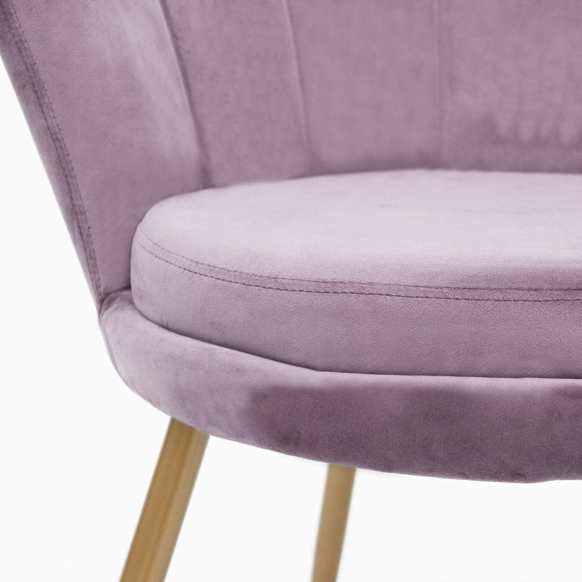 - This chair has a padded seat and wide shell-like back, which will keep you lounging and relaxing in plush, cushioned comfort. It features luxurious velvet upholstery and a tufted back that fit you in all the right places.
