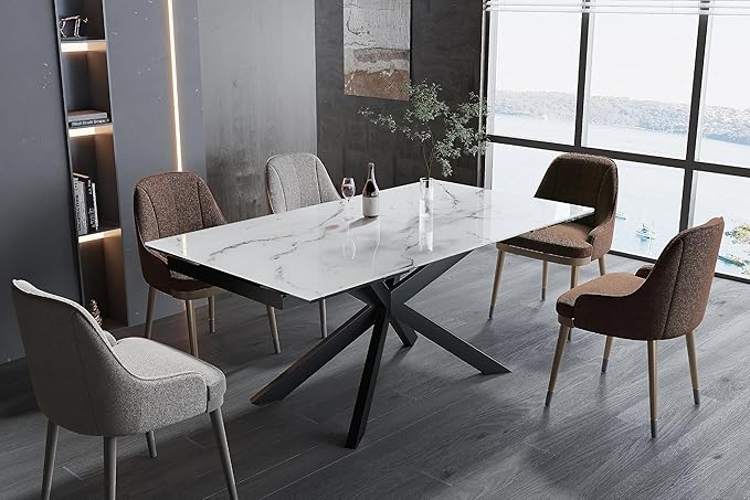 - SOLID & STABLE-With heavy duty X-shaped carbon steel frame structured design and a crossbar is added in the middle, greatly improve the stability and sturdiness of the dining table. The sturdy structure of the dining room table is so durable that can give you years of enjoyment!
