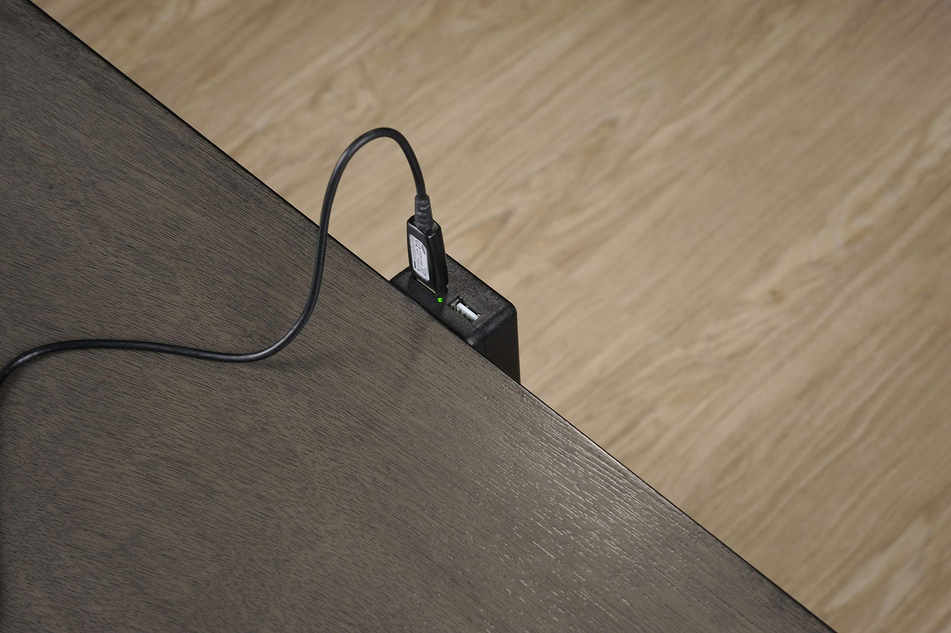Escher Wooden Eastern King Panel Bed with LED in Gray Oak