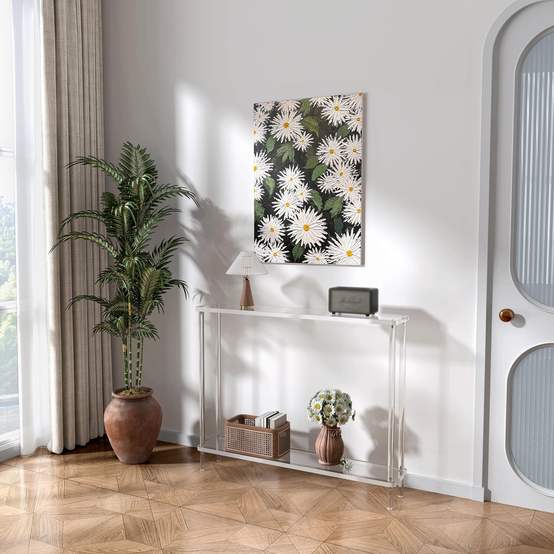Elevate your entryway, hallway, or living room with this sleek modern console table. Crafted from premium acrylic with elegant cylindrical legs, this transparent 2-tier design creates an illusion of space while providing functional storage and display. The narrow profile makes it perfect for tight spaces, while the crystal-clear construction complements any décor style from contemporary to minimalist.