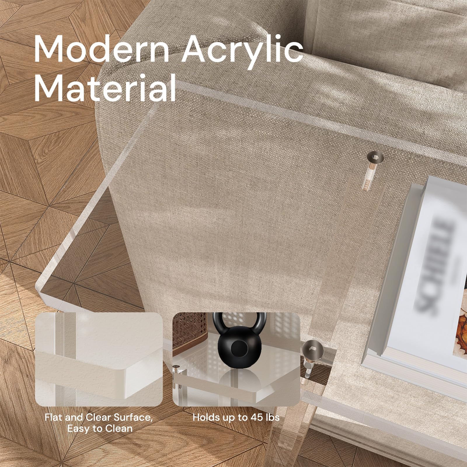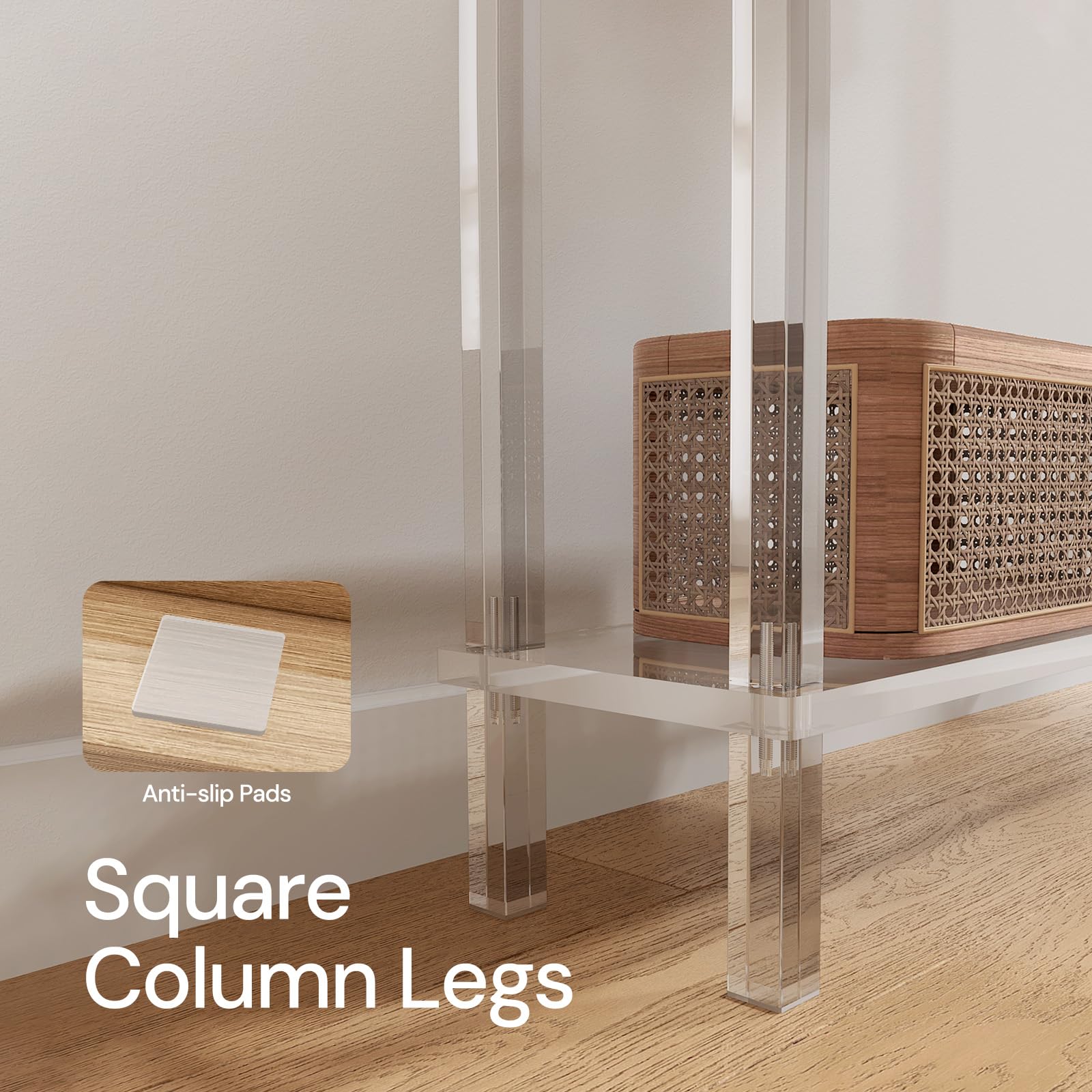 Elevate your entryway, hallway, or living room with this sleek modern console table. Crafted from premium clear acrylic with sturdy square legs, this transparent design creates an illusion of space while providing functional storage across two spacious tiers.