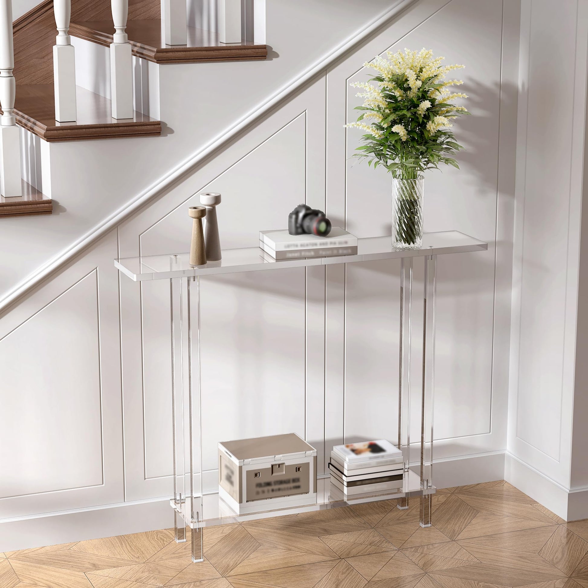 Acrylic Narrow Console Table - 39.4" Clear 2-Tier Entryway Table